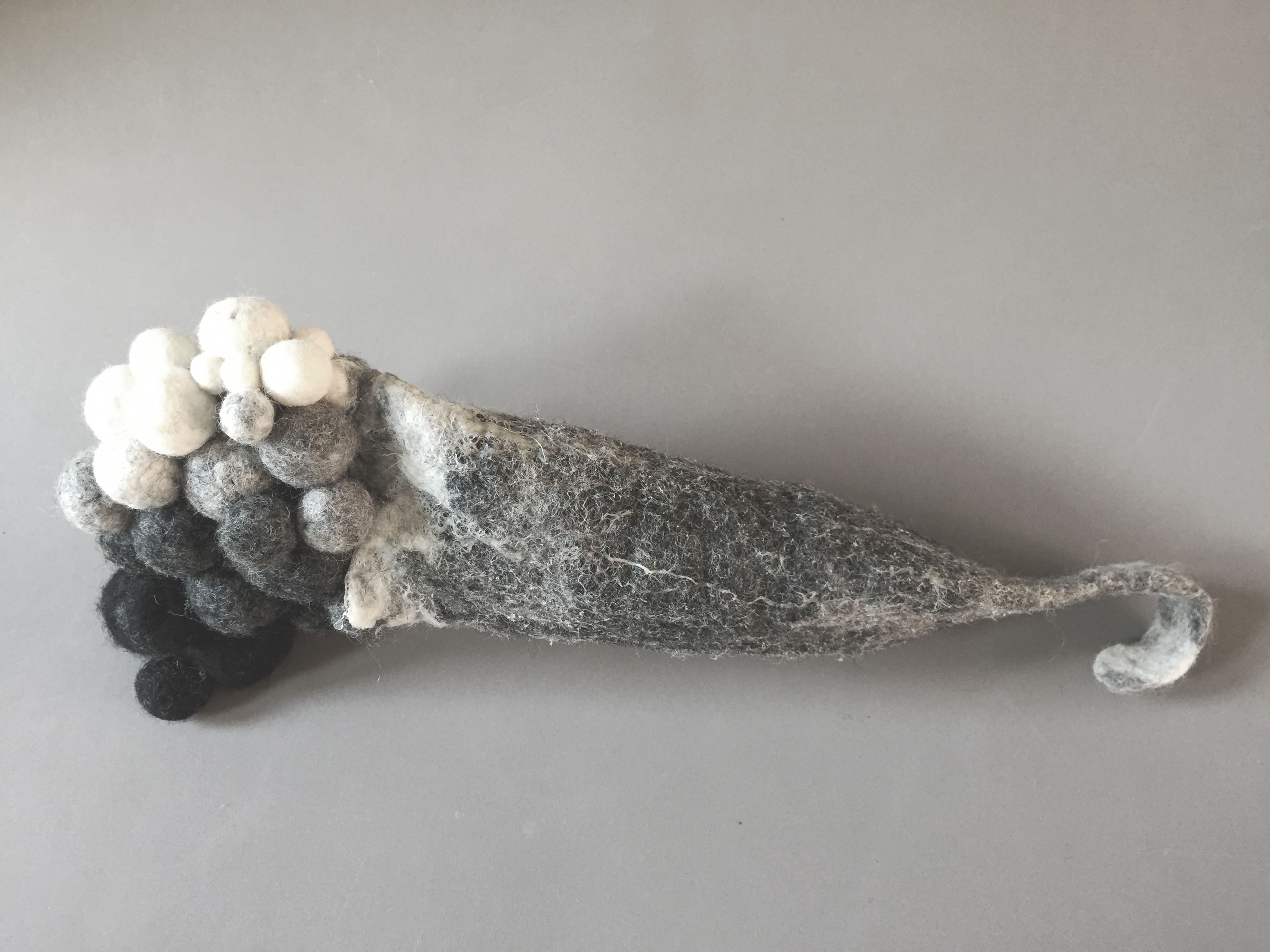 Viltobject 2021 Wol, draad, verharder. Organische vorm, groei.