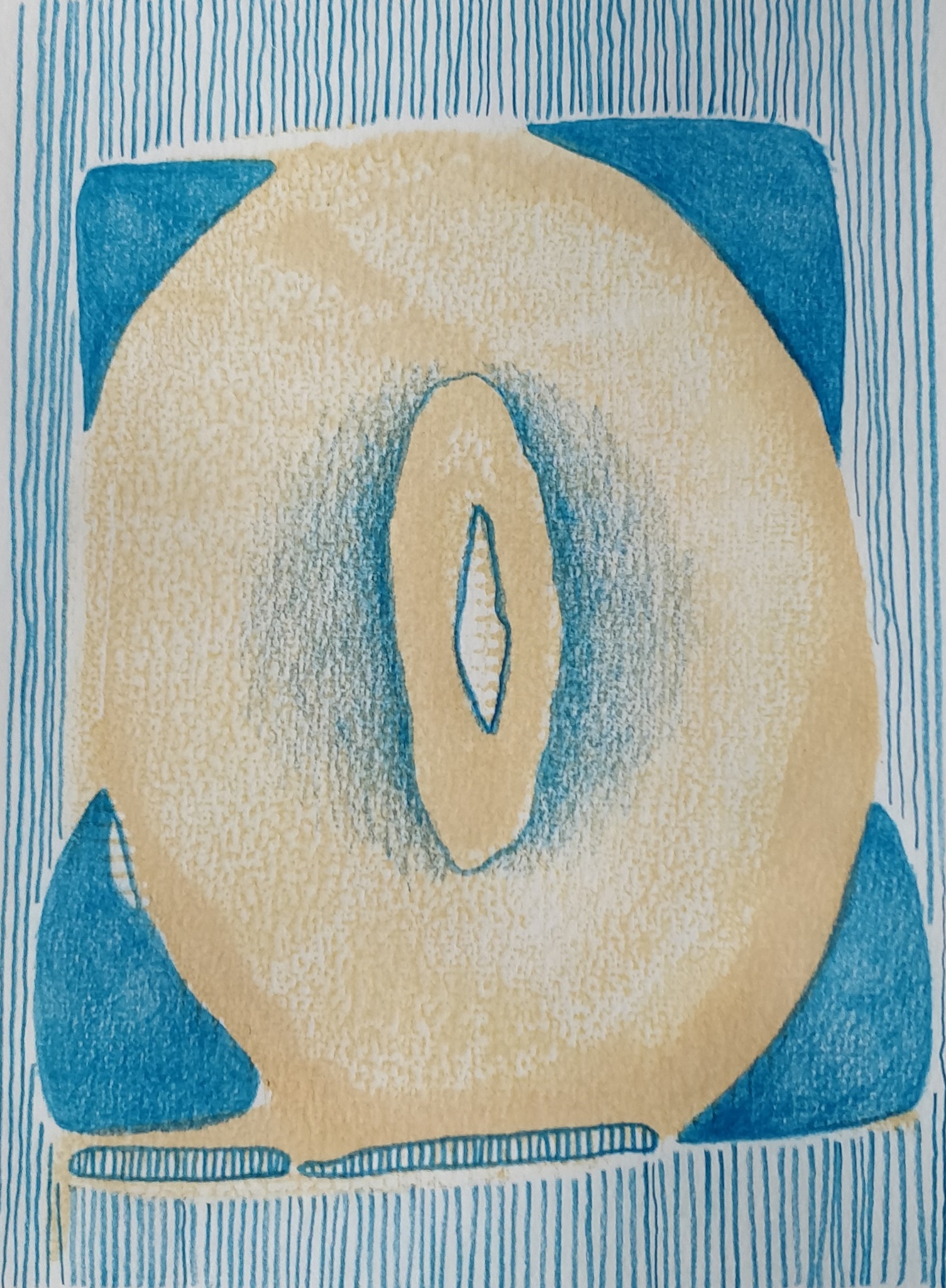 Blauw Acryl Hart Lijnen Vlakken Zand Kleurpotlood Monoprint Kern Levendig