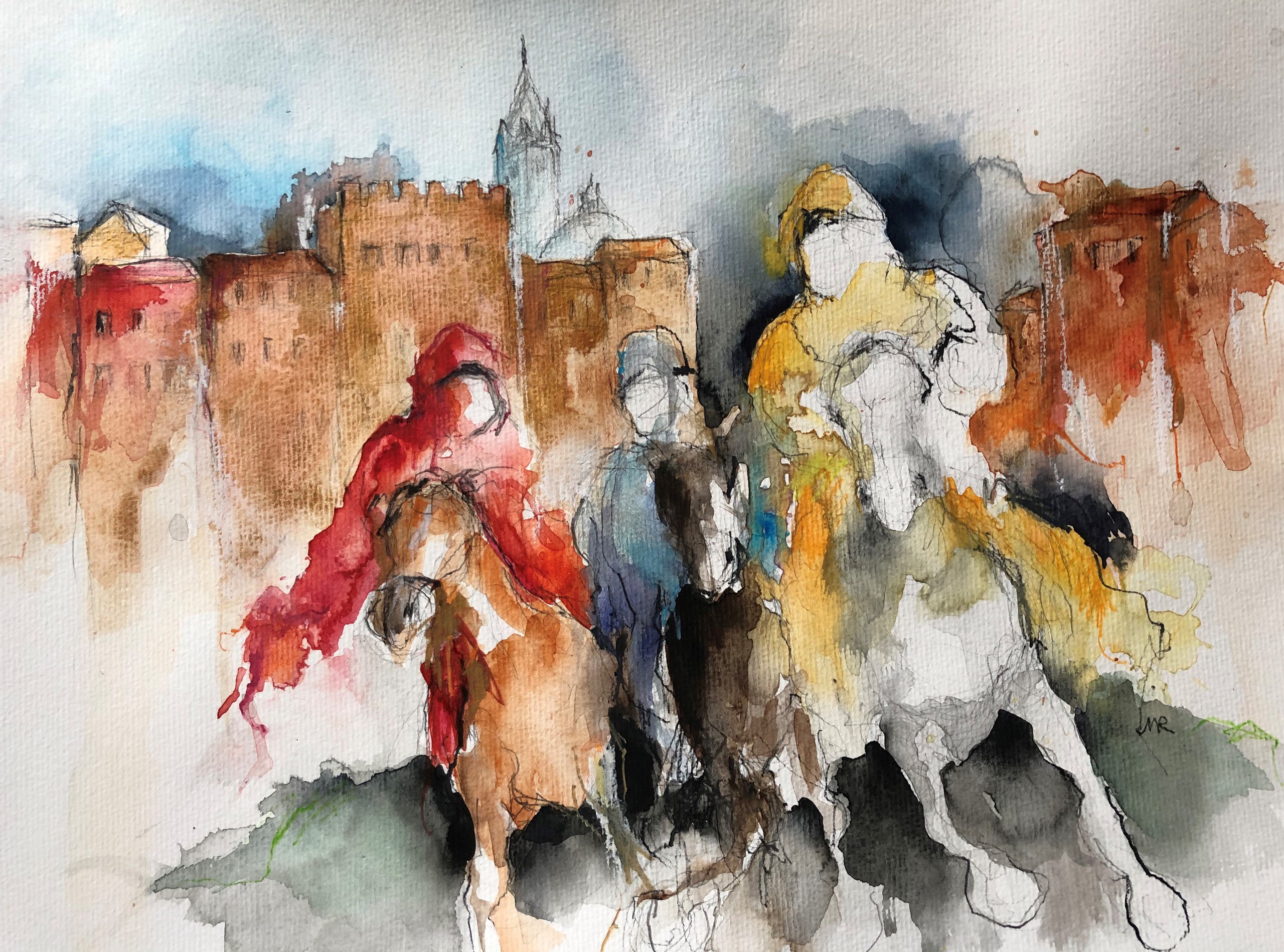 Abstract Aquarel Paarden Italie Siena Palio
