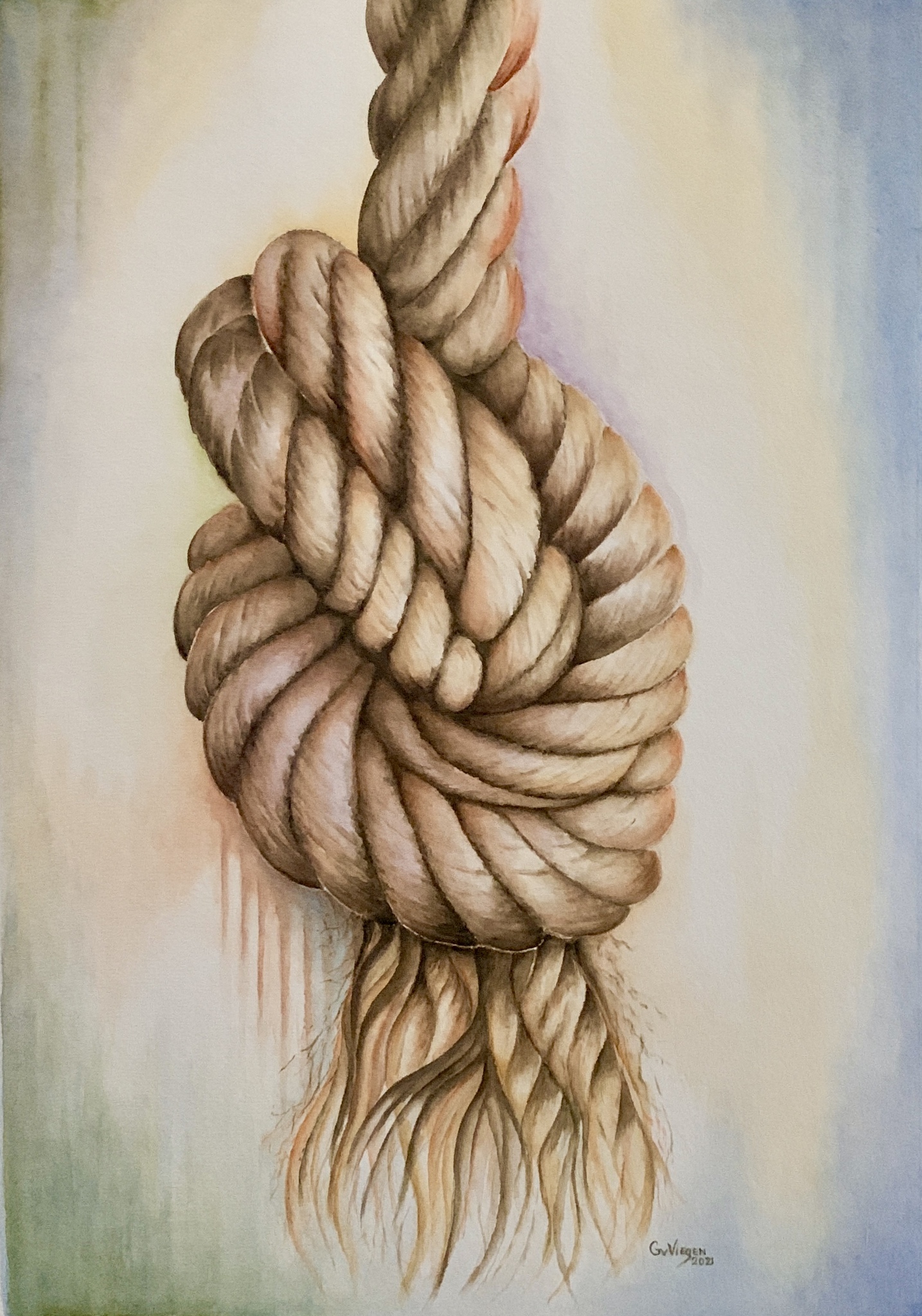 Bruin Knoop Aquarel Realistisch Tafereel Touw Symbolisch Knooppunt