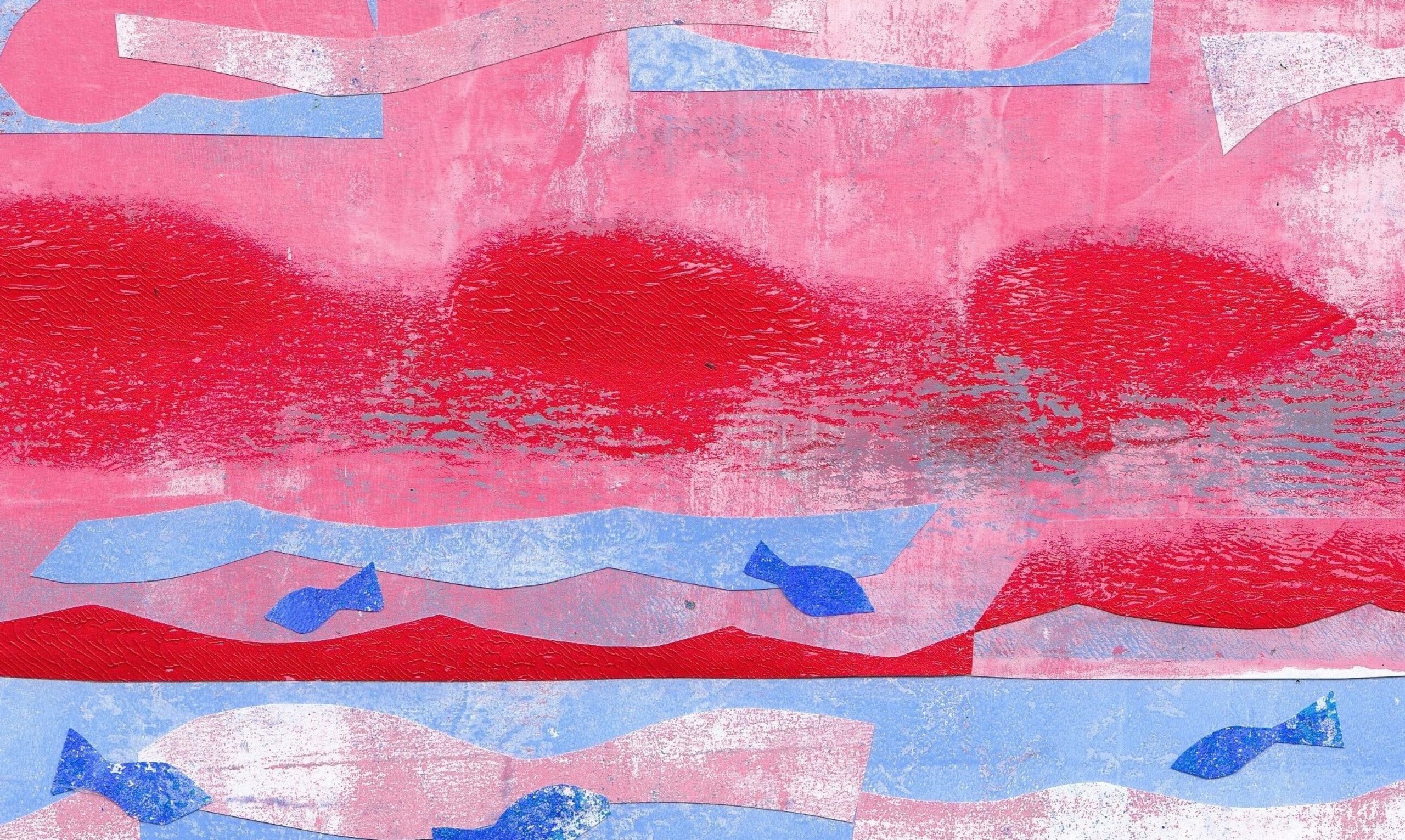VERKOCHT Lockdowncollages nummer #12 / Silly Landscapes / Landscape with fish Het idee van de serie lockdown collages was: maak elke dag iets, maak je niet druk om de 'preciesheid', laat perfectionisme los. Een wabi sabi mentaliteit, als het ware. Houd die vast en maak elke dag iets. Maakt niet uit als er af en toe een minder geslaagd resultaat is. Het succes zit in de dagelijkse praktijk en veel maken helpt om beter werk te maken. Ik stelde een doel: 100 kleine werken. Het werden er zeker 60. Landscape with fish. De gekke landschappen maken mij aan het lachen. En de bonte kleuren maken mij vrolijk. Kennelijk andere mensen ook. Dit werk is verkocht. Bijna alle collages zijn gemaakt op 250grams papier van A5 formaat.