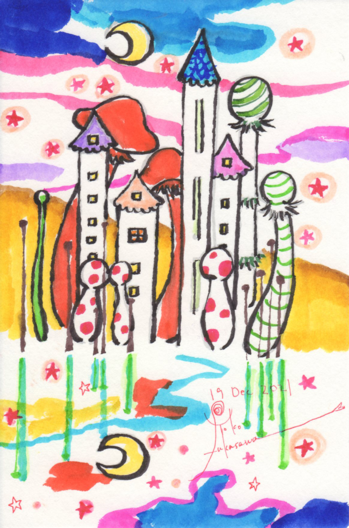 Yoko Fukasawa was born in 1982. 2001-Japan traditional craft department,Metal crafts major 2001-Volkswagen new Beetle - art contest The third place. 2002-TOKYO DOME - Tableware festival Fine work. 2017-And Schizophrenia has been revealed. Her paintings are outsider art. They are characterized by simple shapes and bright colors. She wants you to look at them and relax.