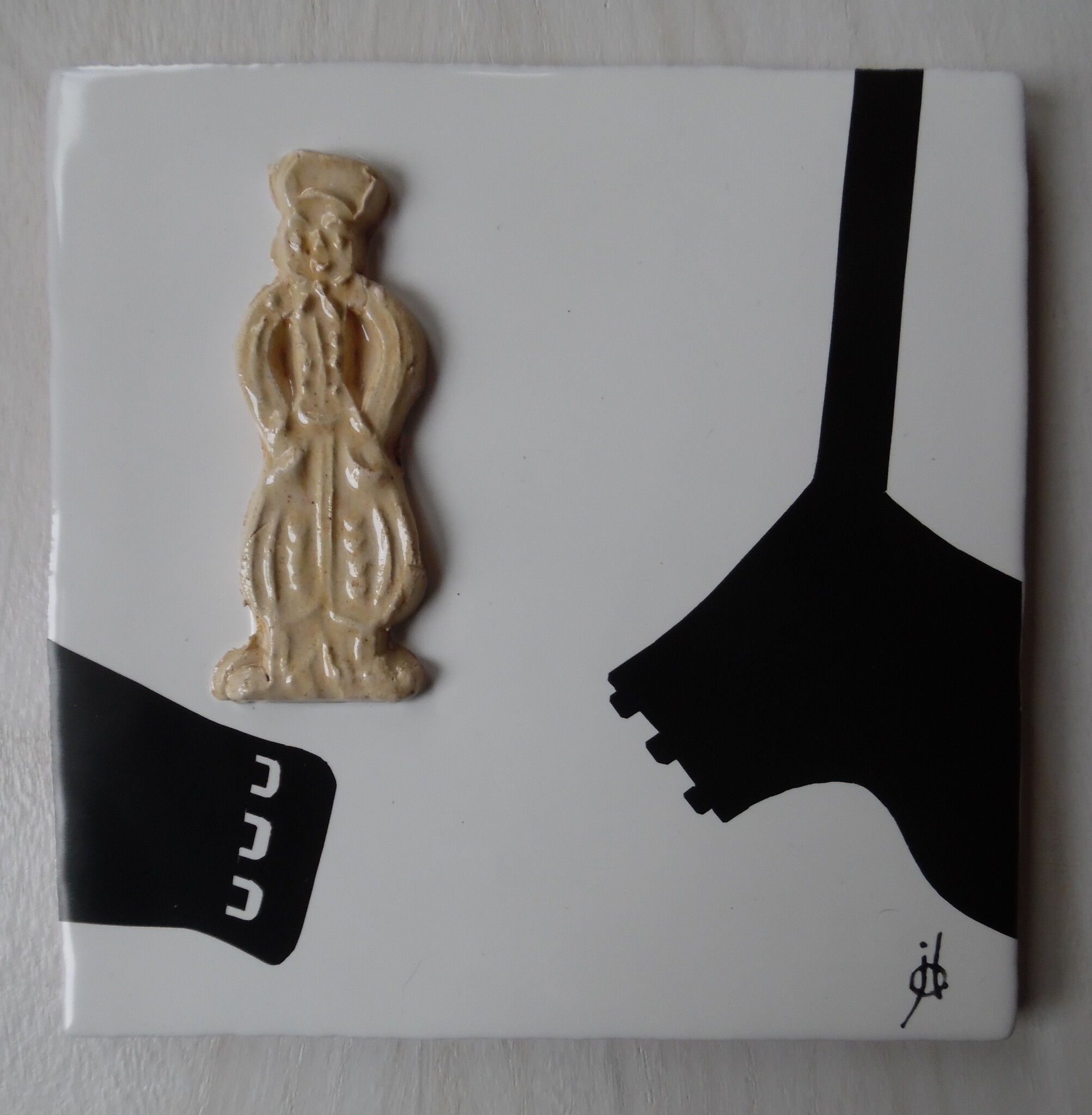 " Een kleur wordt gevoel, een vorm een gedachte. " Waarom tegeltjes? Deze zijn duurzaam, decoratief en vertrouwd. De uitdaging is ambachtelijke technieken in te zetten voor een beeldtaal. Een beeld dat een feest der herkenning wordt! " hooked" tegelgram mei 2019 oude aardewerk tegel met zeefdruk.