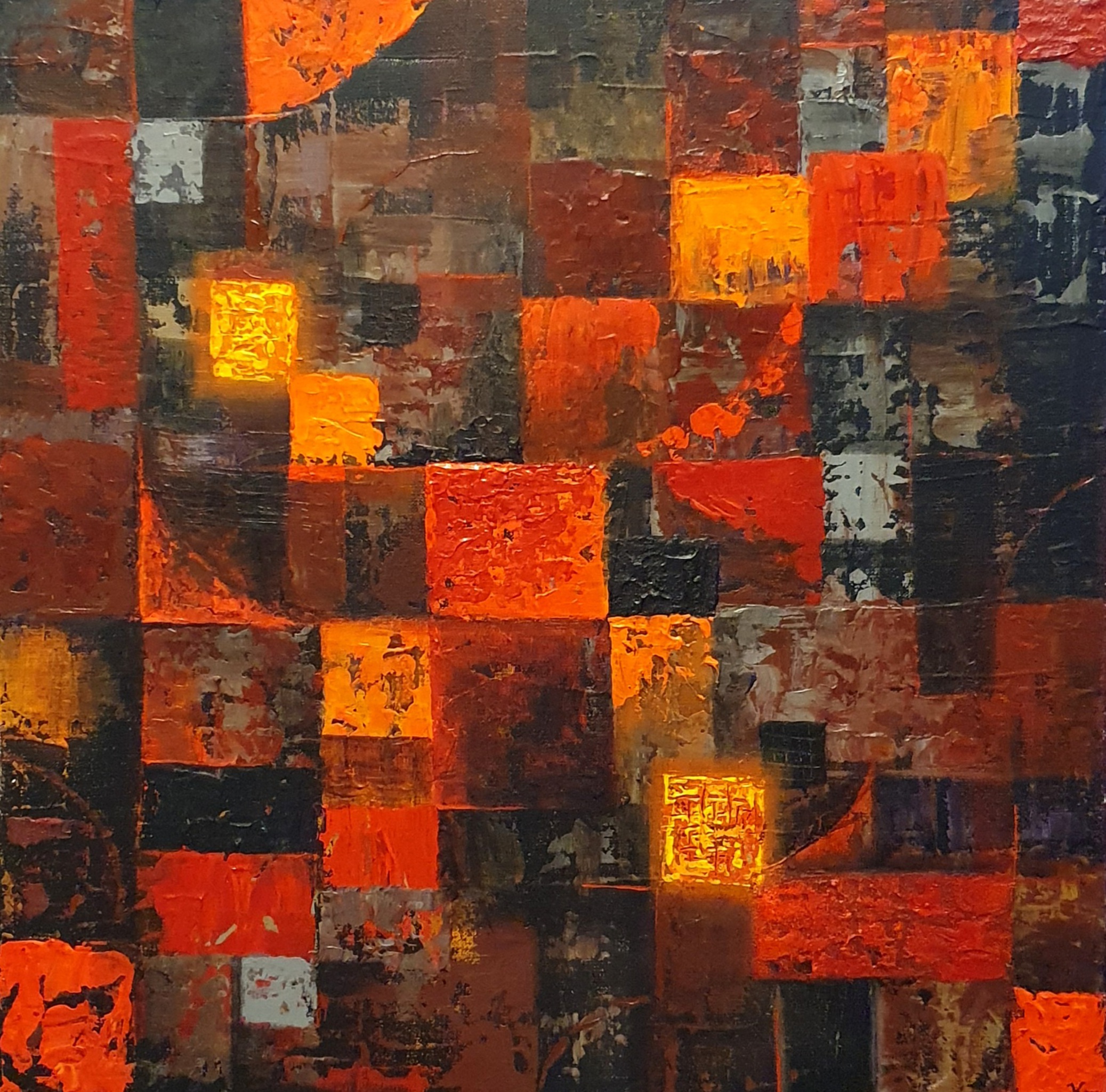 Rood Oranje Expressief Vierkant Of Paletmes Me Reliëf Blokjes Pieces