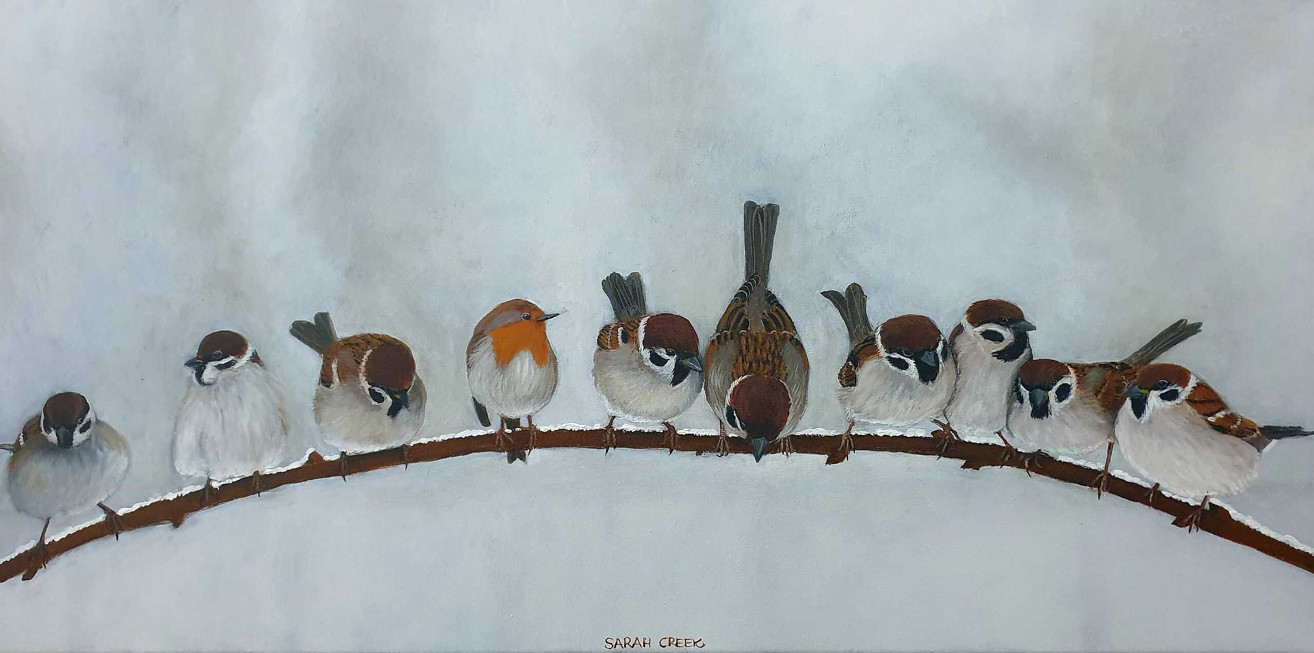 Acryl Tafereel Winter Mussen Roodborstje Dutchartist