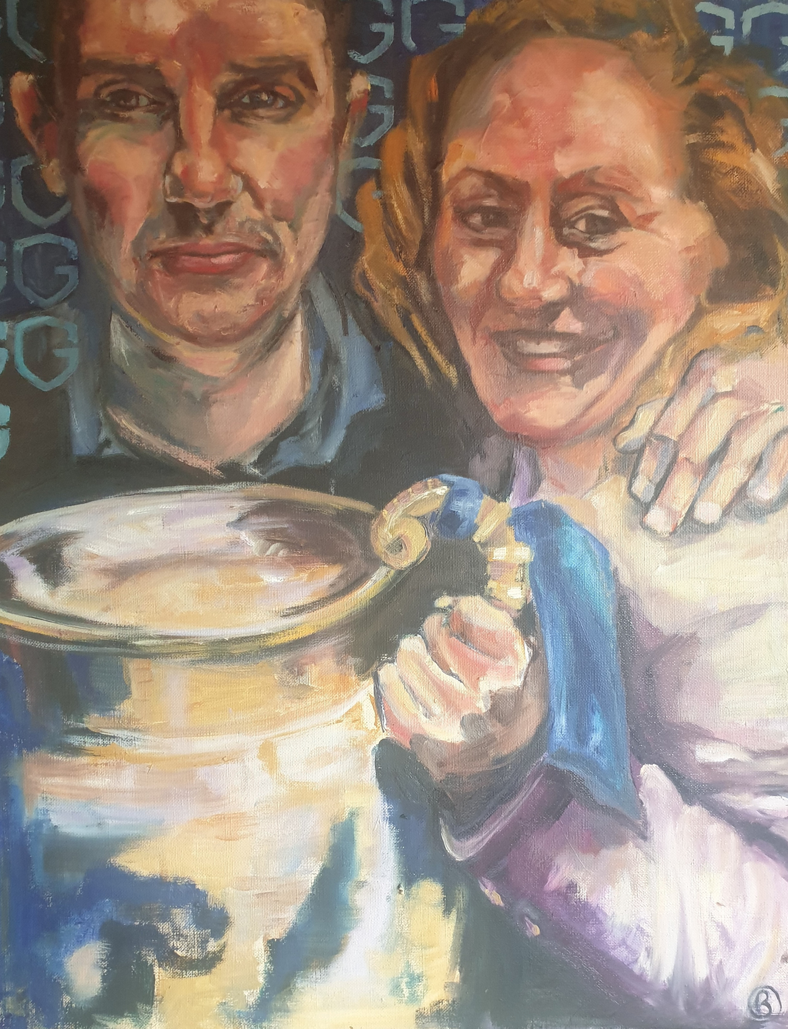 Ik ben dol op de kleuren, het gelukkige gezicht van de vrouw en de 'coole blik' van de man.
