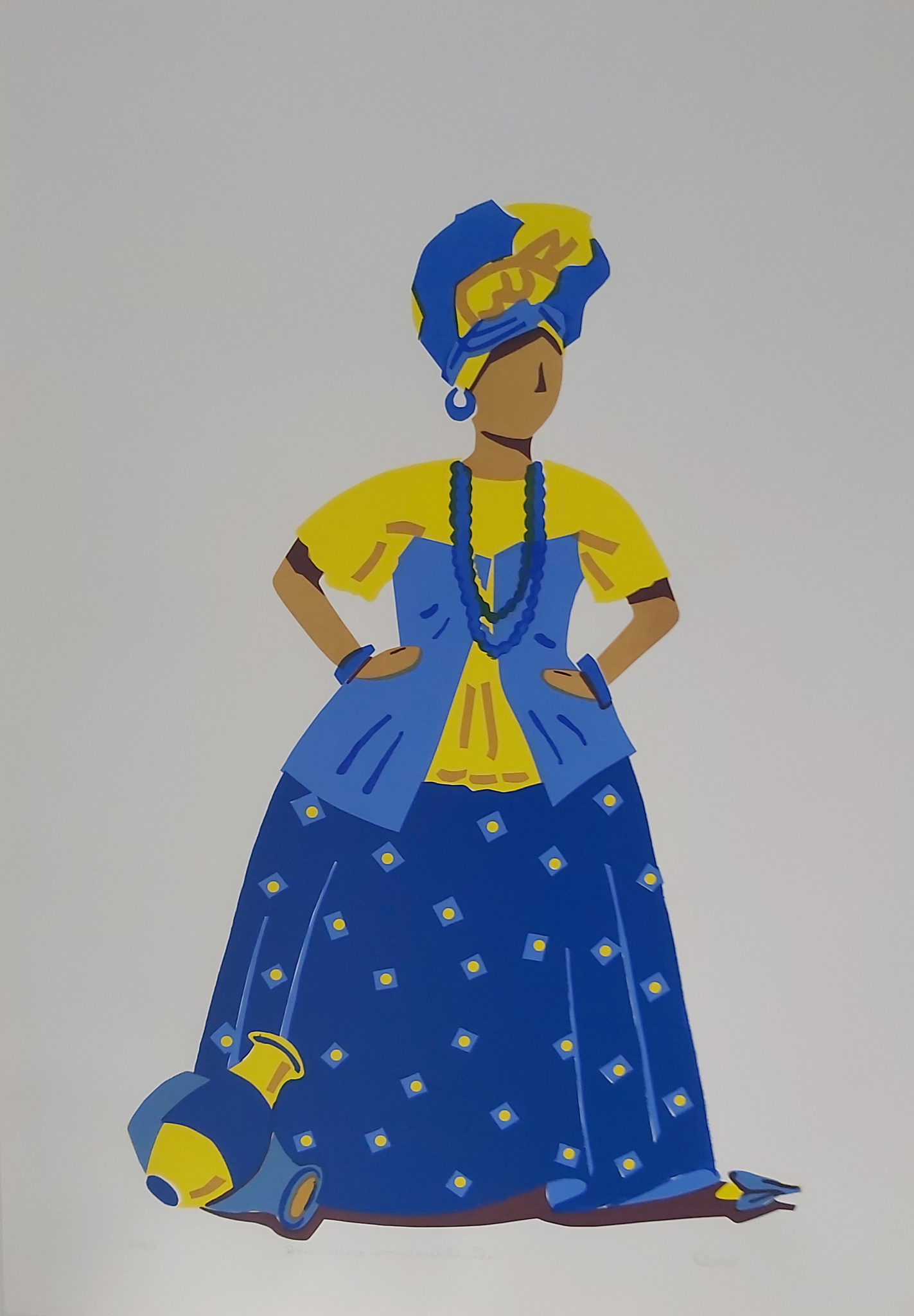 Braziliaanse vrouw met kruiken, handgemaakte zeefdruk, oplage oplage 20 stuks. Beeldformaat 35 x 52 cm. Papierformaat 66 x 49 Leverbaar met of zonder lijst.