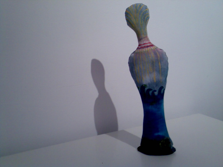 jeans stof beschilderd,kan zelfstandig staan,hoogte gemiddeld 60cm. achterkant.