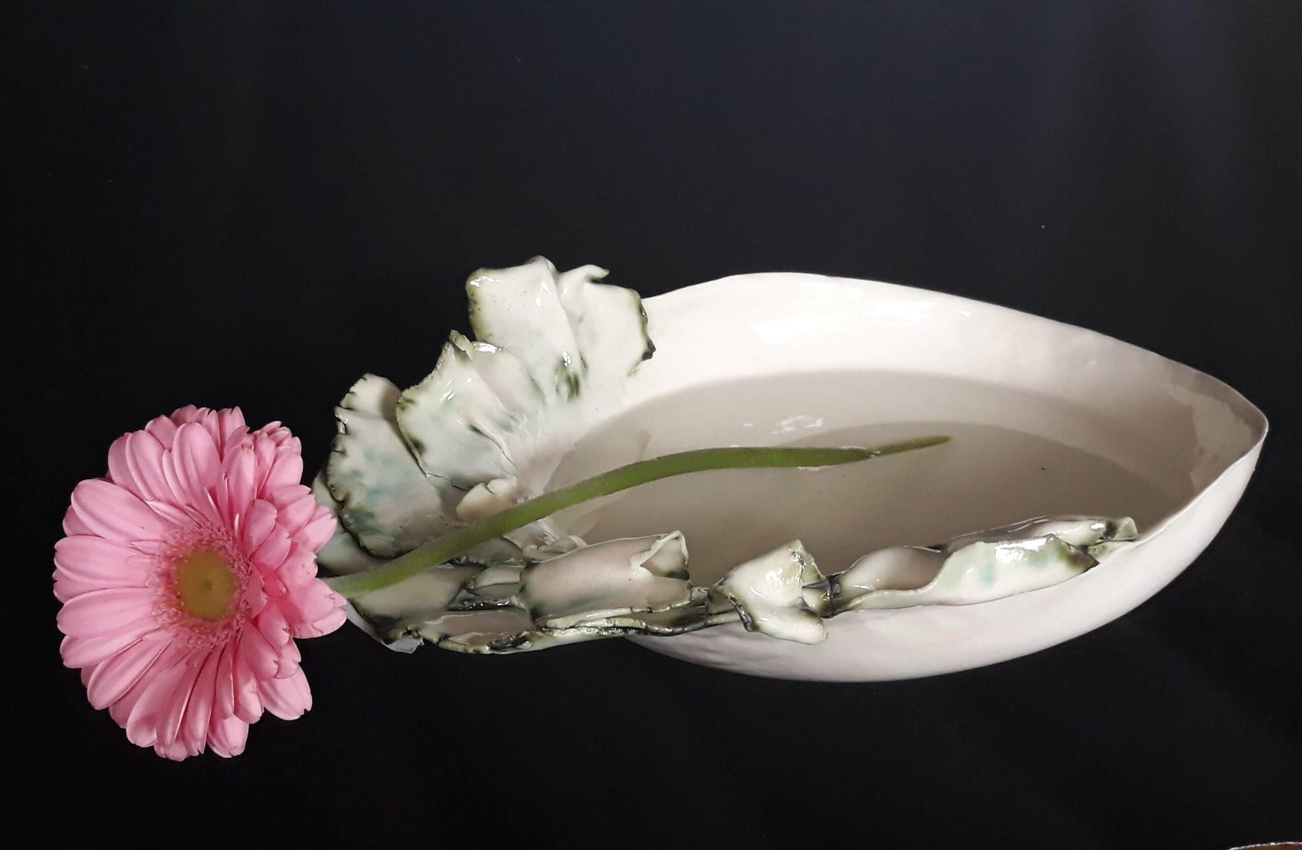 Denise Maaskant werkt met porselein en kermamiek, porselein gebruikt ze voornamelijk voor het fijne werk zoals haar sieraden die ze combineerd met zilver. Keramiek voor objecten vazen en schalen.