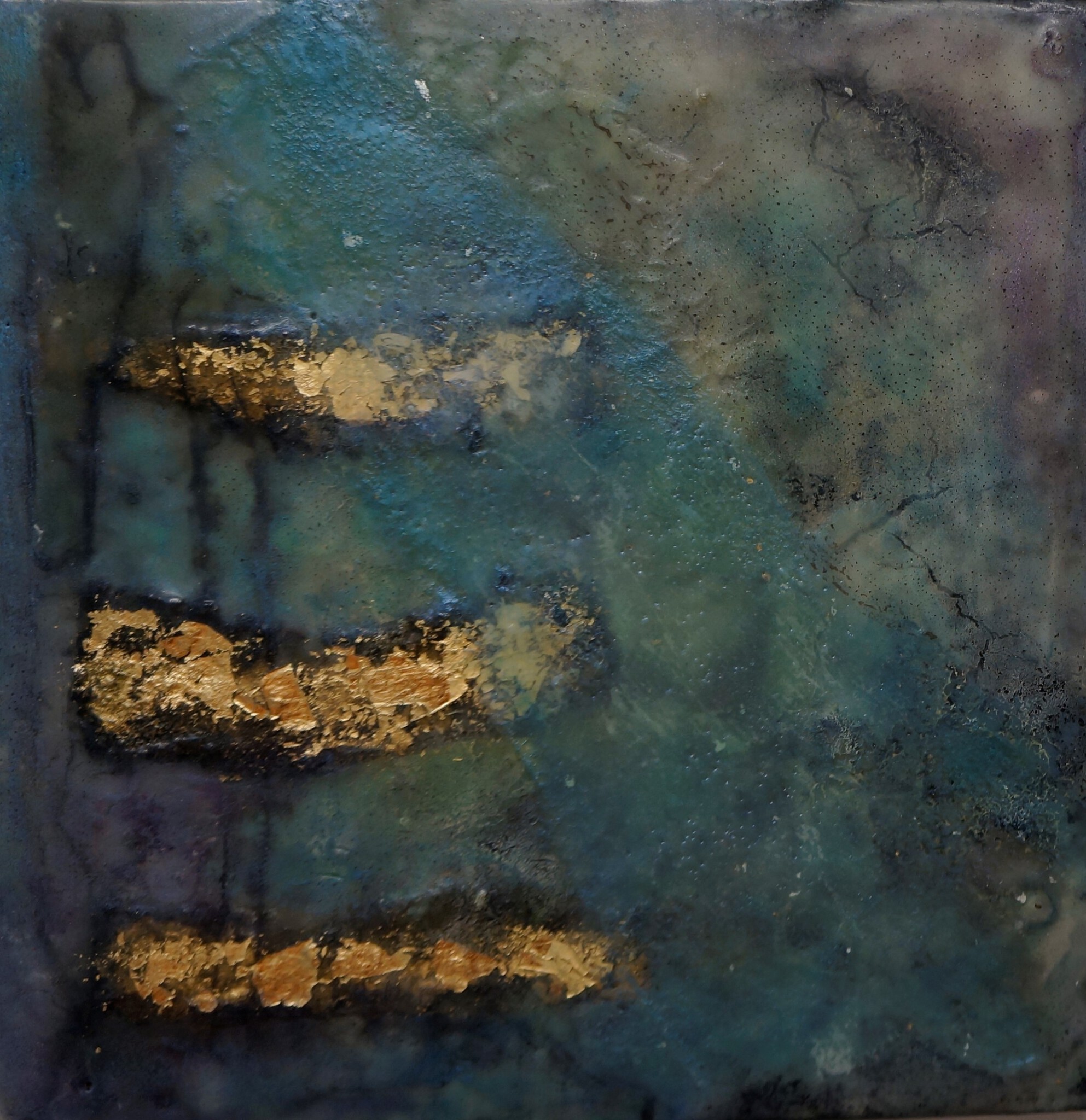 Encaustic Bijenwas Wax Blauw Azuur Goud Monoprint