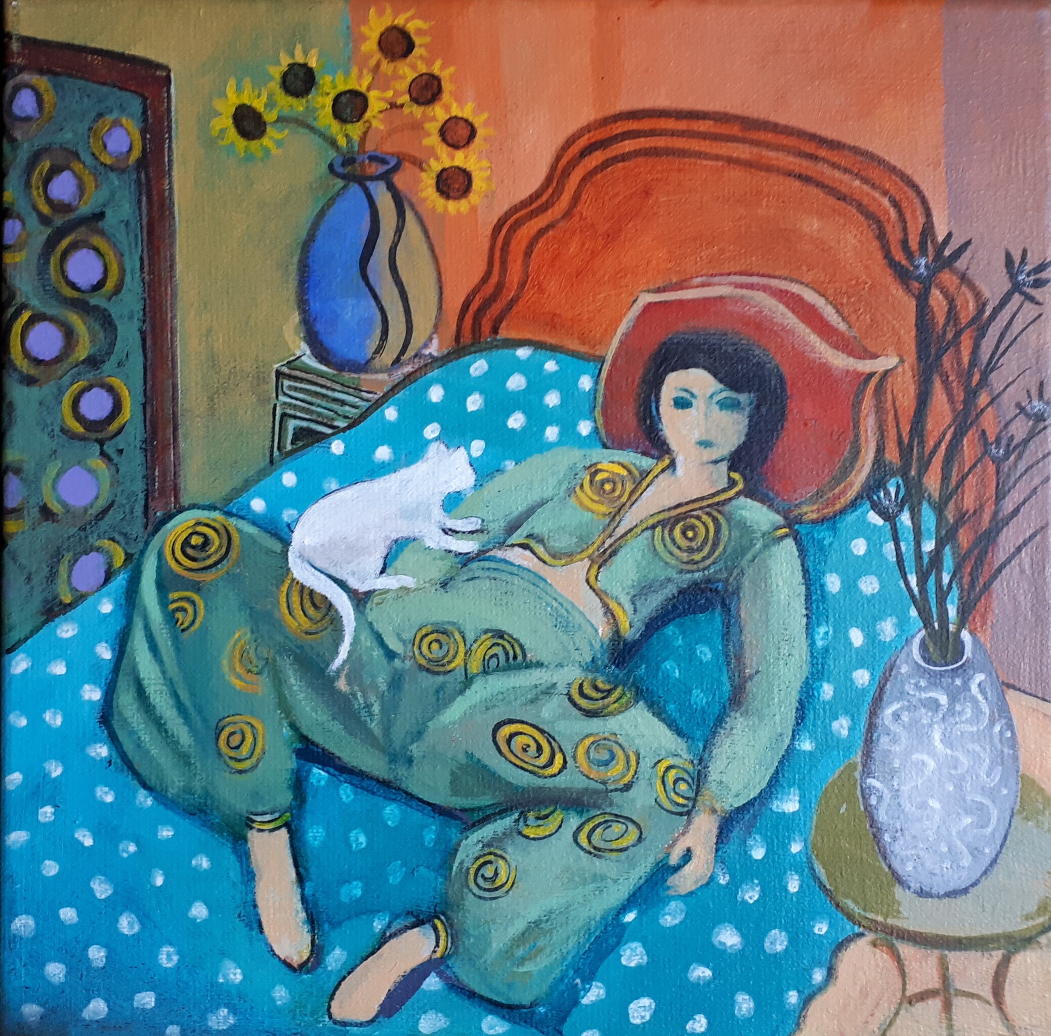 Afrikaans #model #vrouw #witte #figuratief #oosters #kleurig #poes#kat #noord