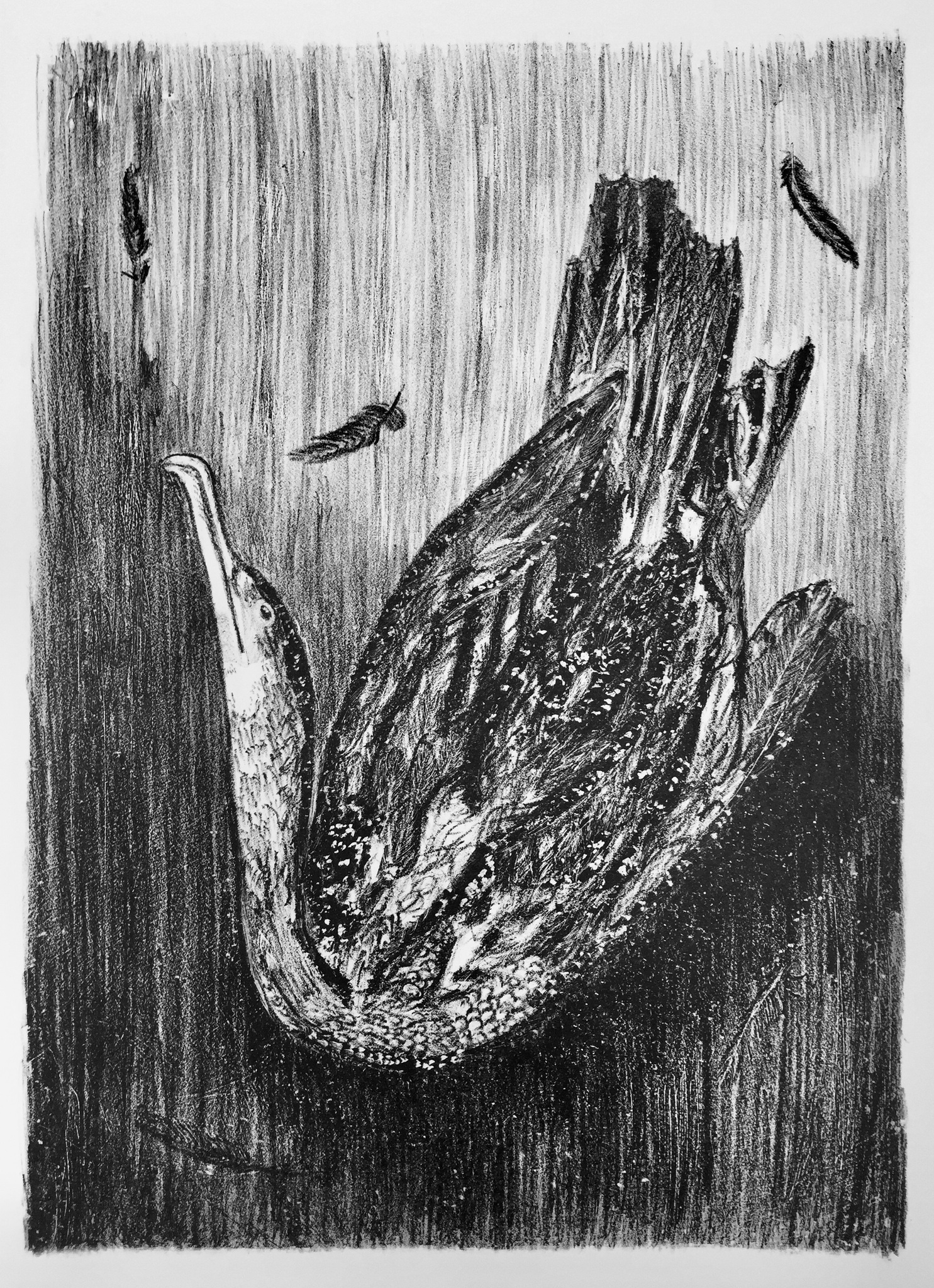 Marian Visser (Middelharnis, 1968) maakt etsen, litho's, lino's en tekeningen van (inheemse) dieren, mensen en bomen.
