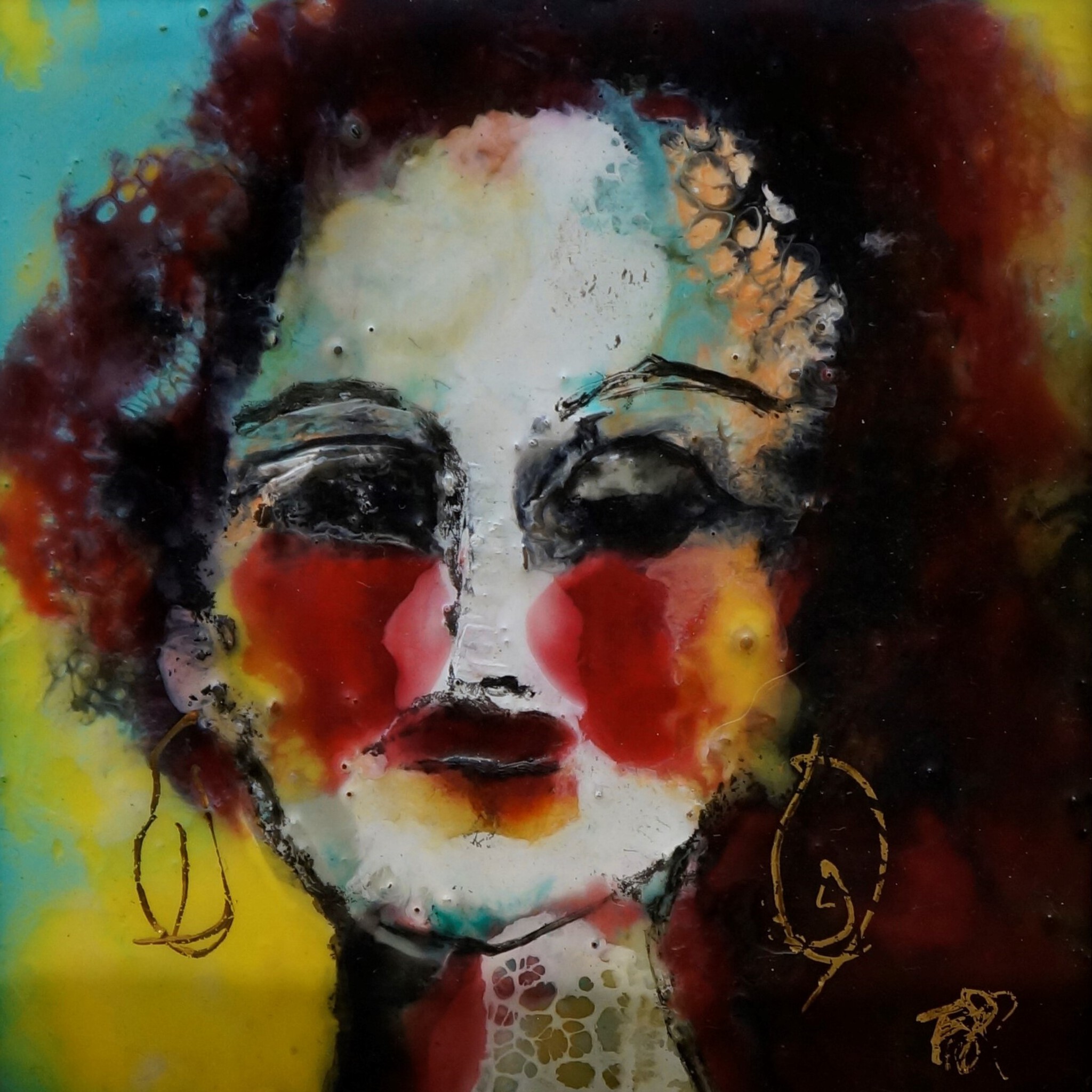 Encaustic portretje van 10x10cm