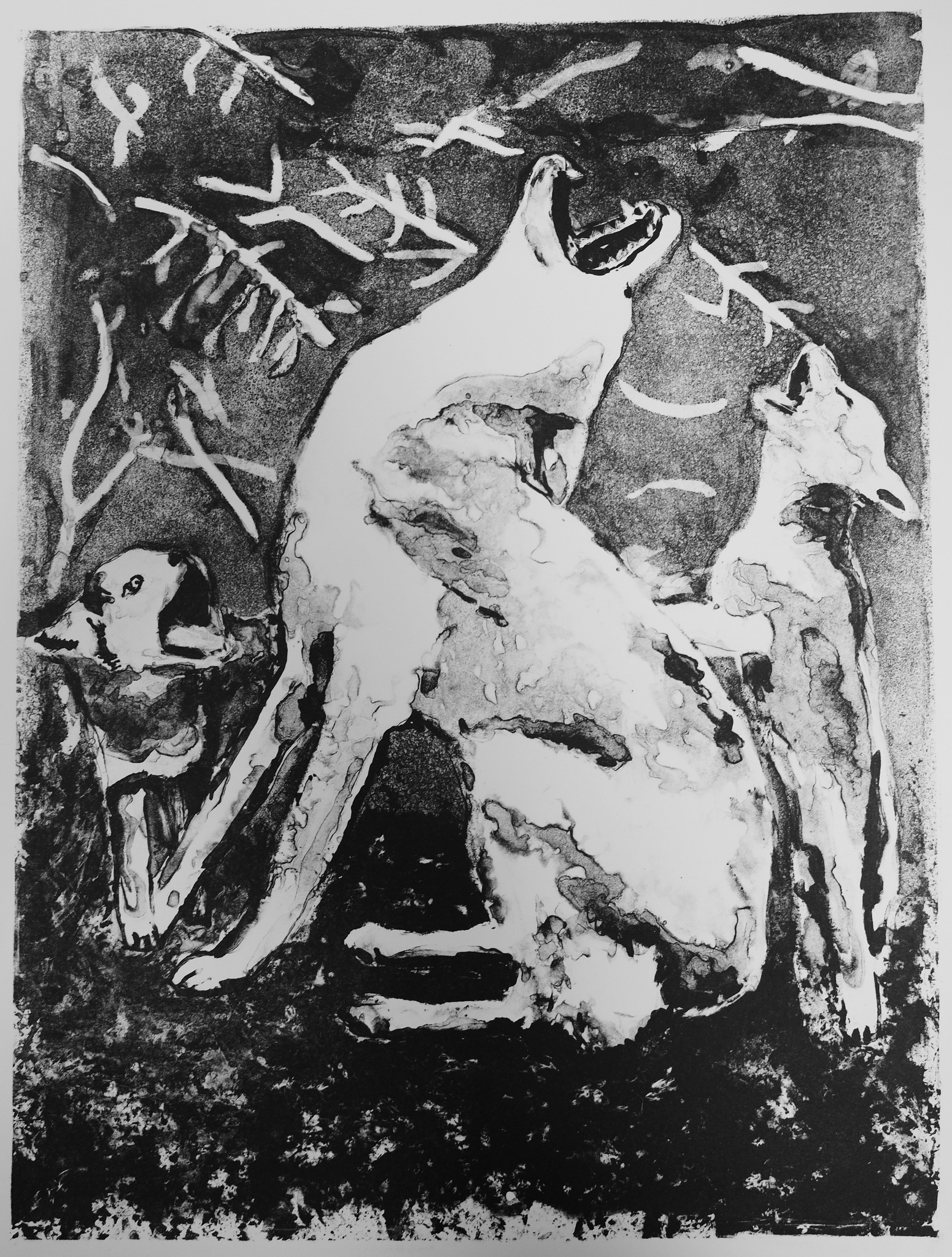 Marian Visser (Middelharnis, 1968) maakt etsen, litho's, lino's en tekeningen van (inheemse) dieren, mensen en bomen.
