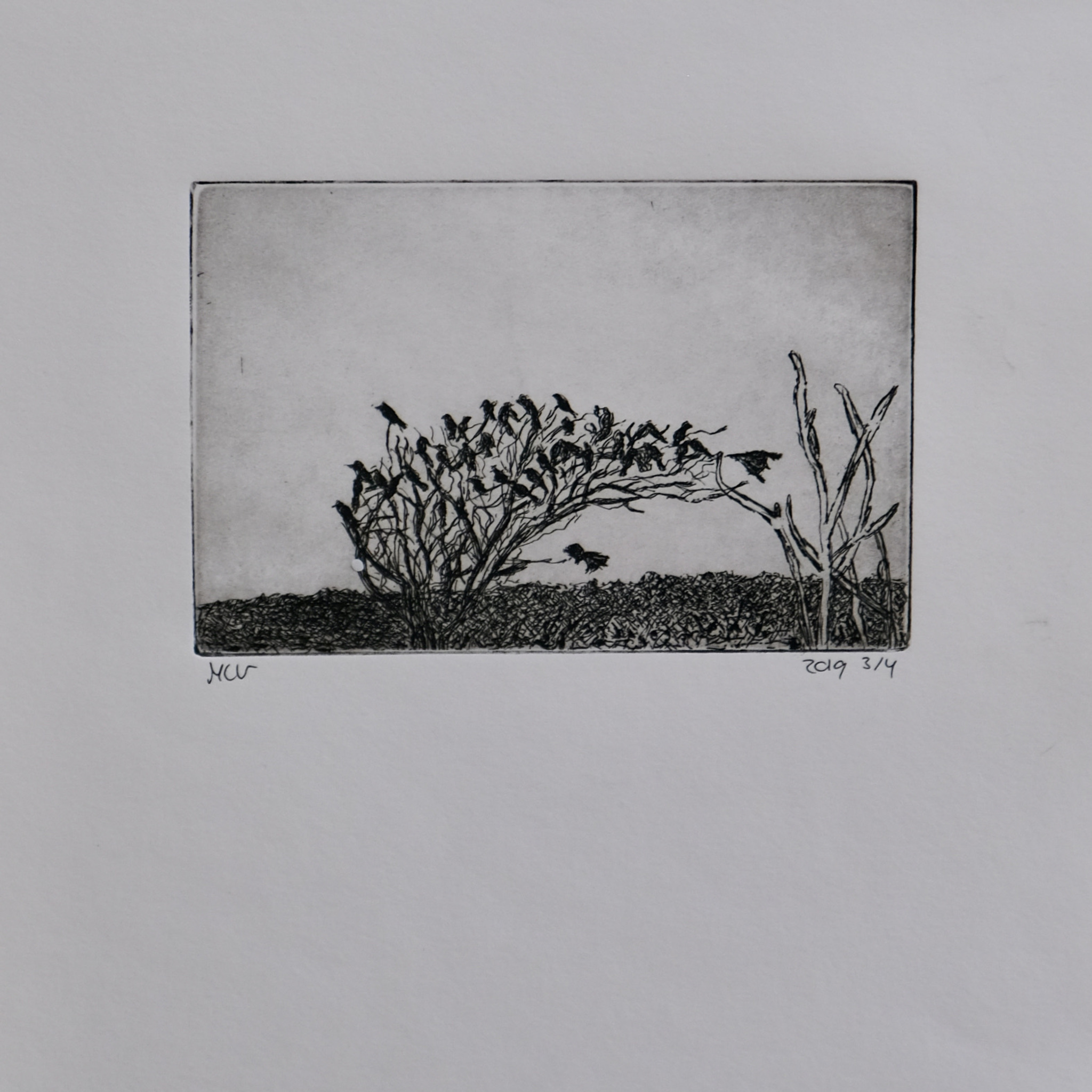 Marian Visser (Middelharnis, 1968) maakt etsen, litho's, lino's en tekeningen van (inheemse) dieren, mensen en bomen.