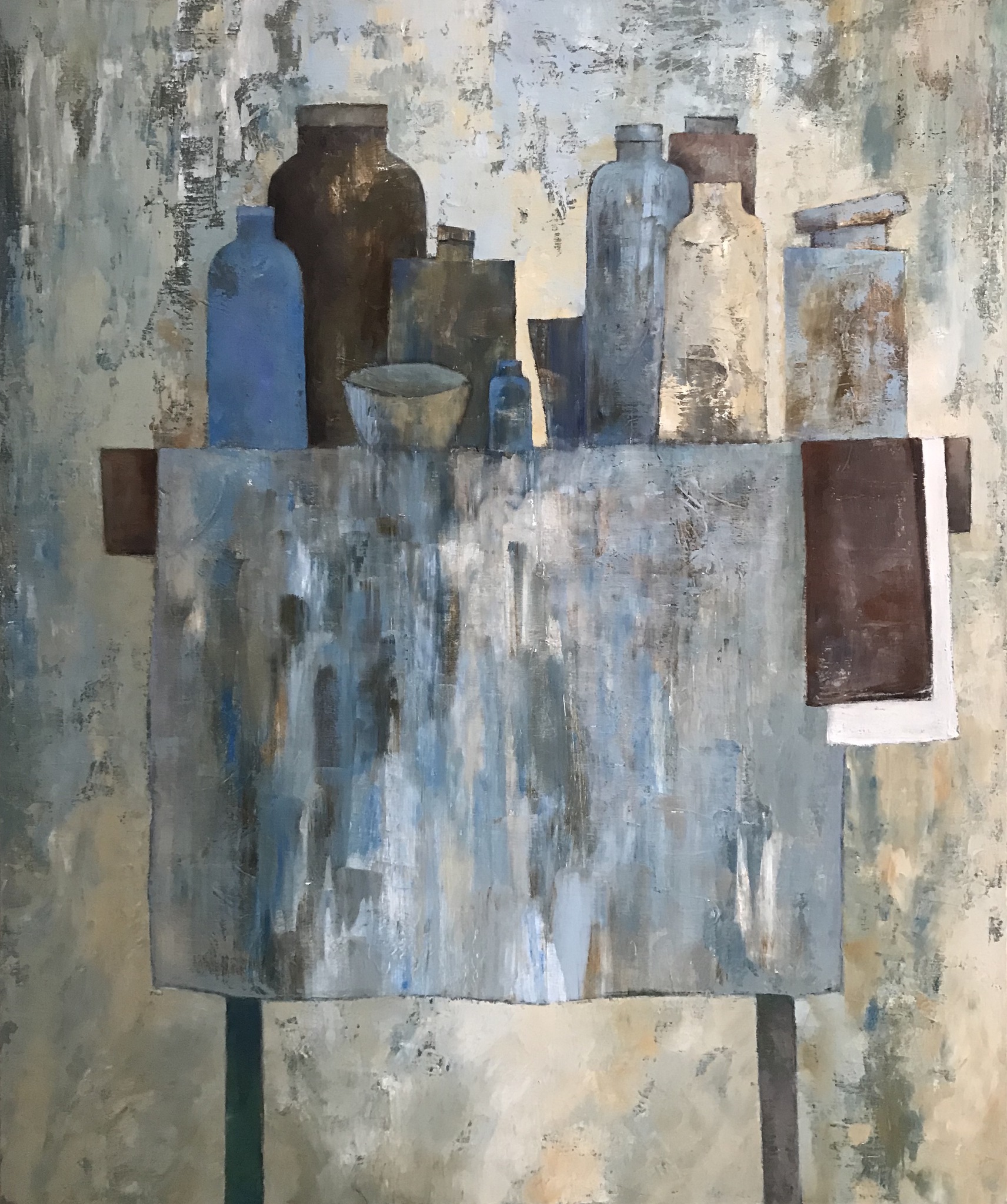 Wat betekent schilderen voor mij. Het is een uitdaging om het witte doek te temmen . Het met kleur bespelen , gebruikmakend van andere materialen zoals verband , krantenpapier , zand en druksels. Het begint met kleurlagen over elkaar , zodat de onderste lagen terug te vinden zijn in het uiteindelijke werk. Al doende ontwikkeld zich iets , het vormt zich , een beeld of gedachte wordt zichtbaar .
