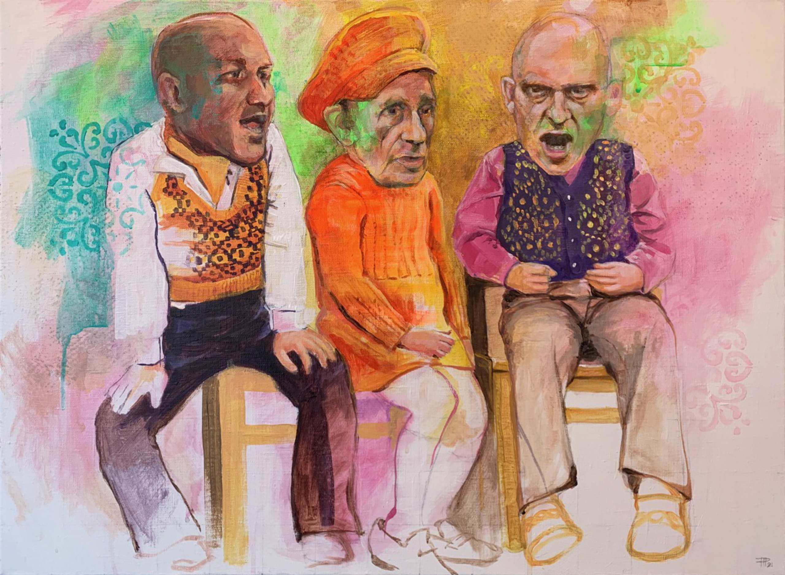 Mijn plezier in tekenen en schilderen komen voornamelijk tot uiting in schilderijen met acrylverf. Soms met een sociaal-maatschappelijk onderwerp, soms pure fantasie.