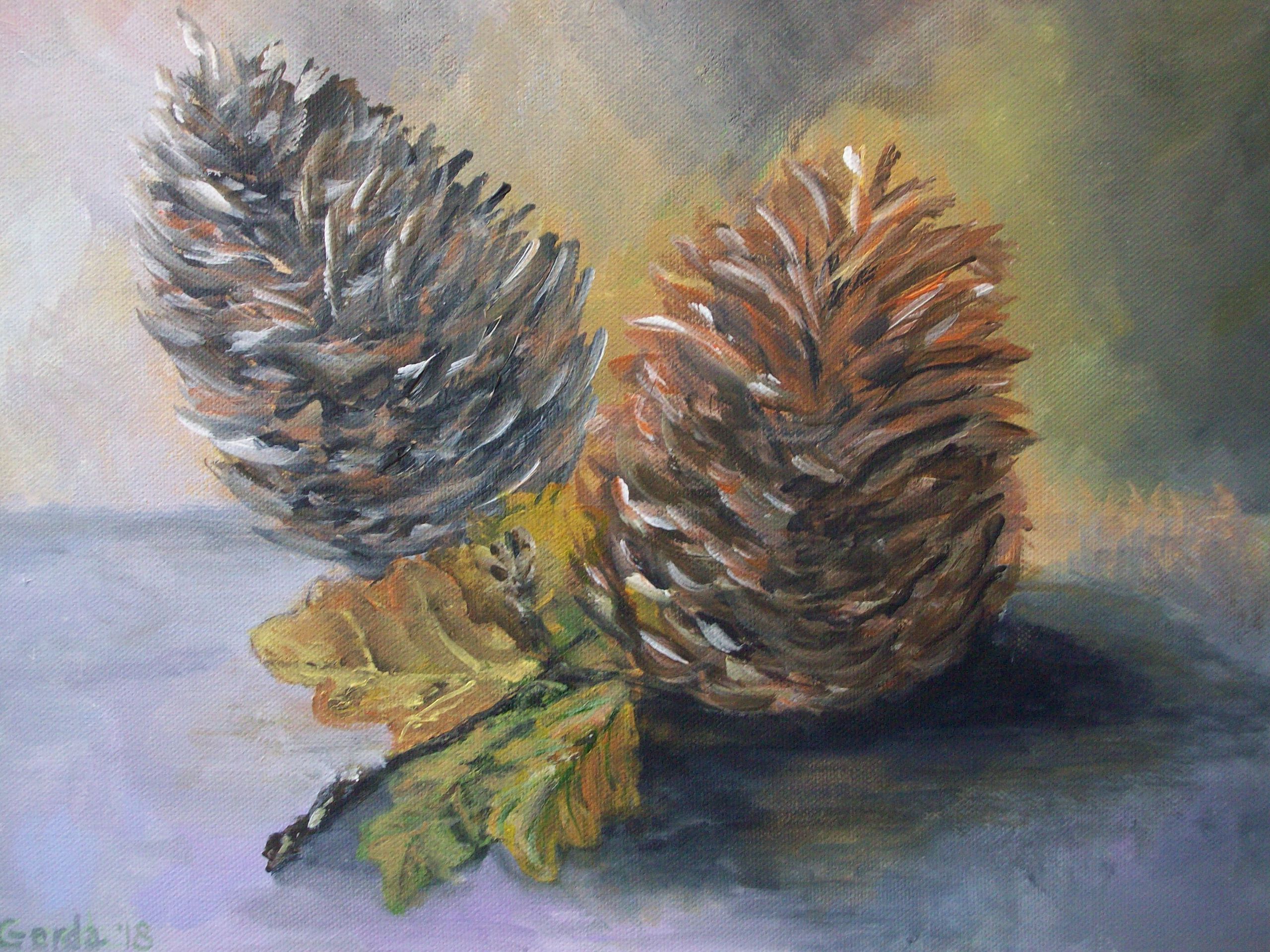 Herfst Herfstsfeer Dennenappels Herfstbladeren Stilleven