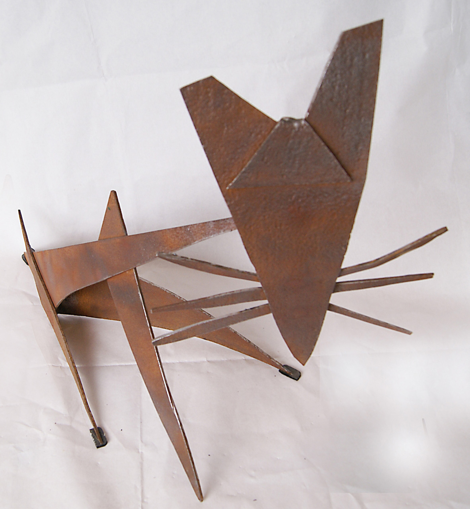 Voor mijn objecten maak ik gebruik van allerlei soorten metaal. Soms nieuw, maar in hoofdzaak is het hergebruik van zaken met een heel uiteenlopende oorsprong.