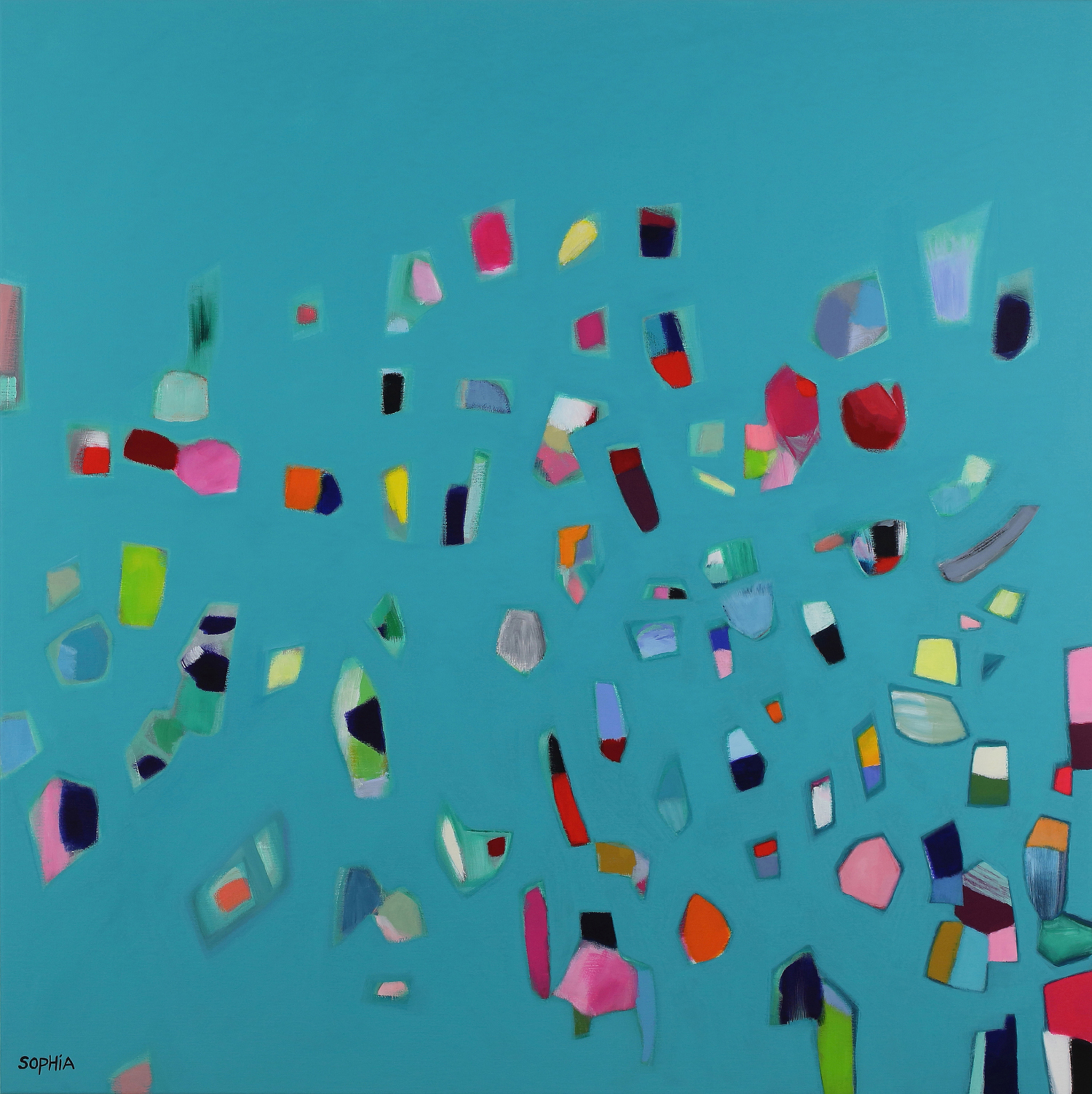 Dit werk is geschilderd op intuitie. Er is meer op het doek gemengd, lijnen worden achterwege gelaten en het werk is opgebouwd uit dunne lagen verf. Let op: Het schilderij is afgewerkt met een matte vernislaag. De zijkanten van het werk zijn meegeschilderd. Het schilderij heeft een aluminium frame met een verschuifbaar ophangsysteem.