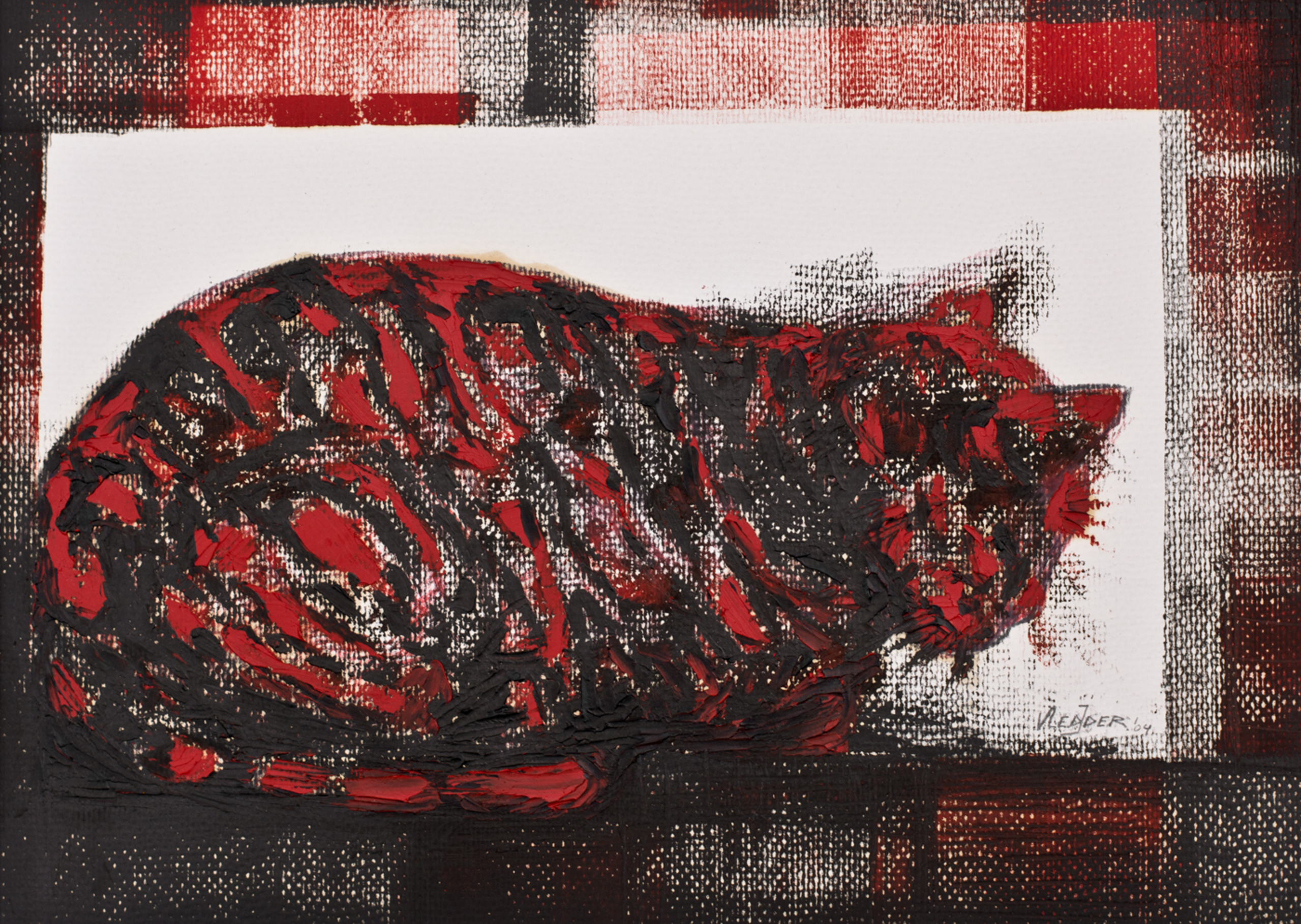 Rood Dieren Kat Olieverf Kunst Grafiek Raam Monoprint Drukkunst