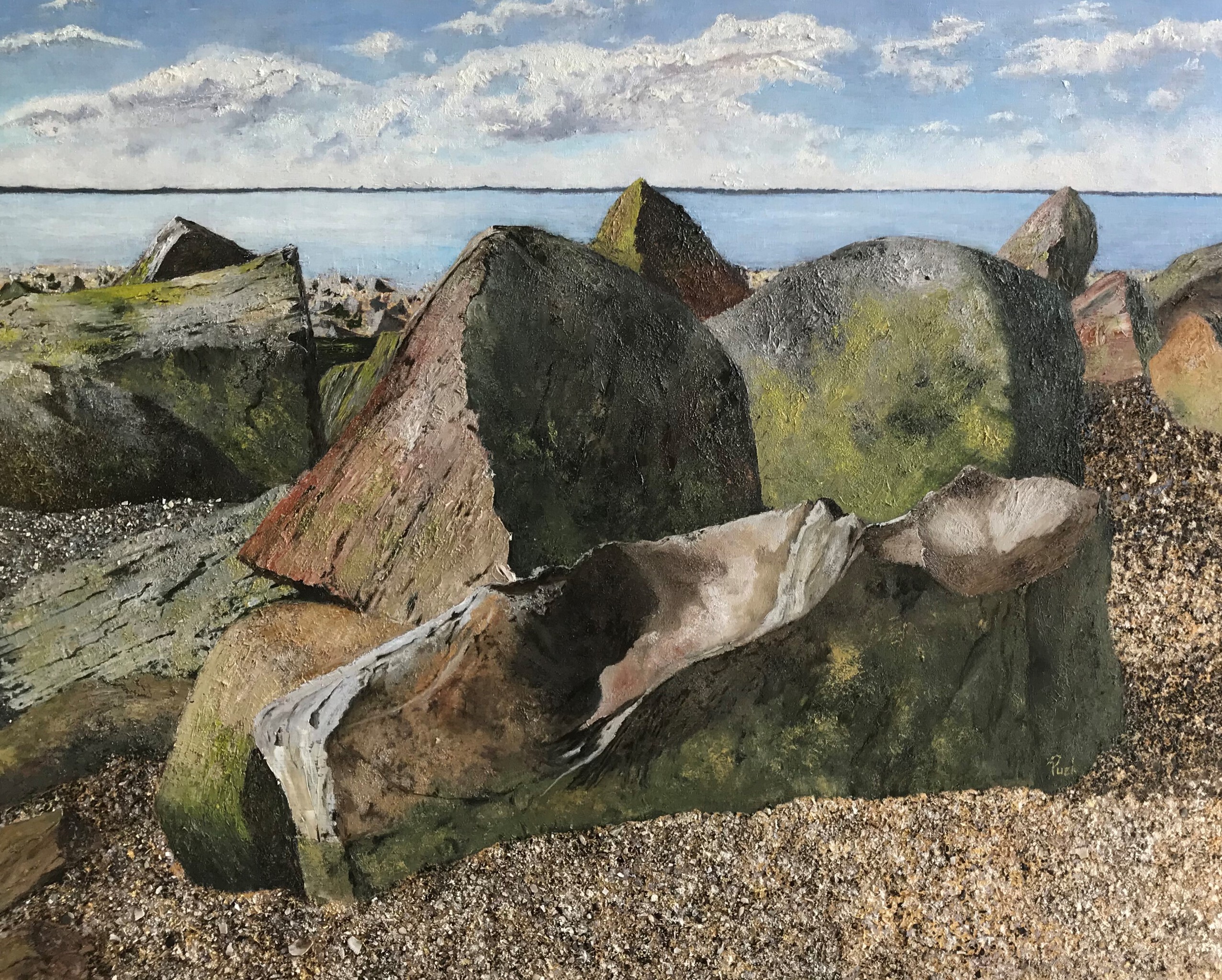 Ik schilder de landschappen en zeegezichten in mijn directe omgeving. Na vele studies in het veld maak ik nu grote doeken in mijn atelier. Realistisch, in olieverf.
