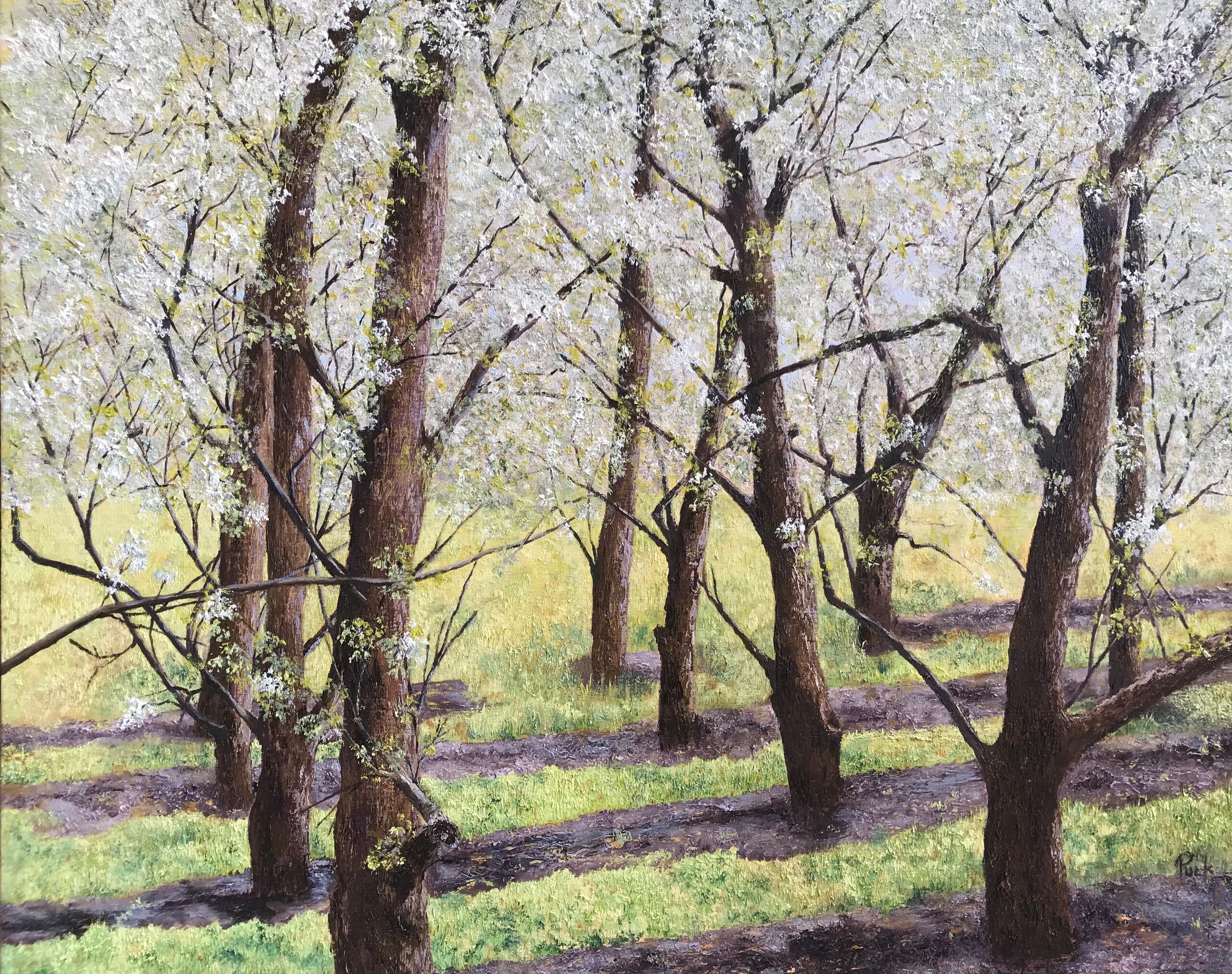 Olieverf Boomgaard Lente Zeeland Bloesem Voorjaar Peren Landschappen Tholen Sintmaartensdijk Puckmeijer