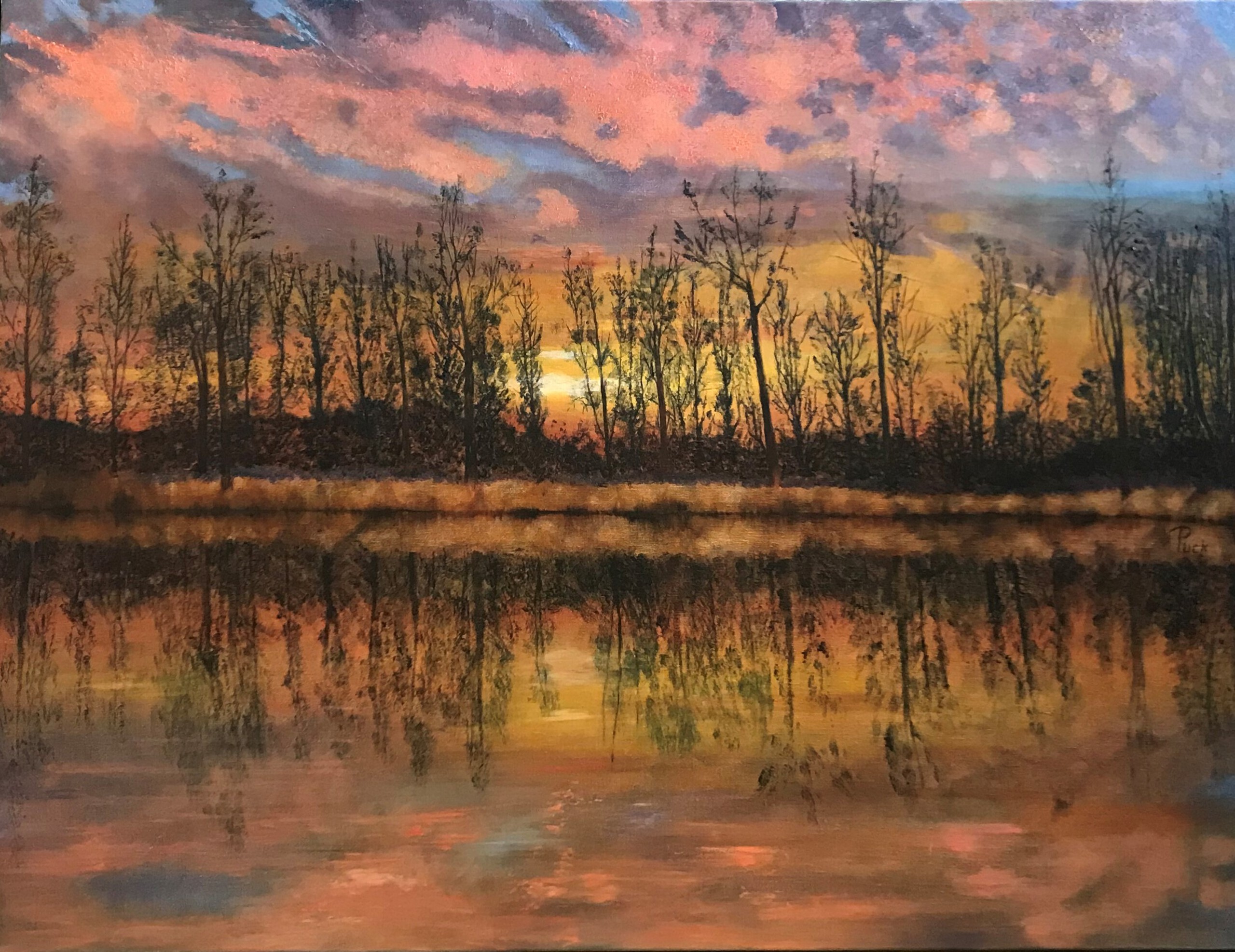 Olieverf Zeeland Avond Landschappen Tholen Ondergaandezon Sintmaartensdijk Puckmeijer