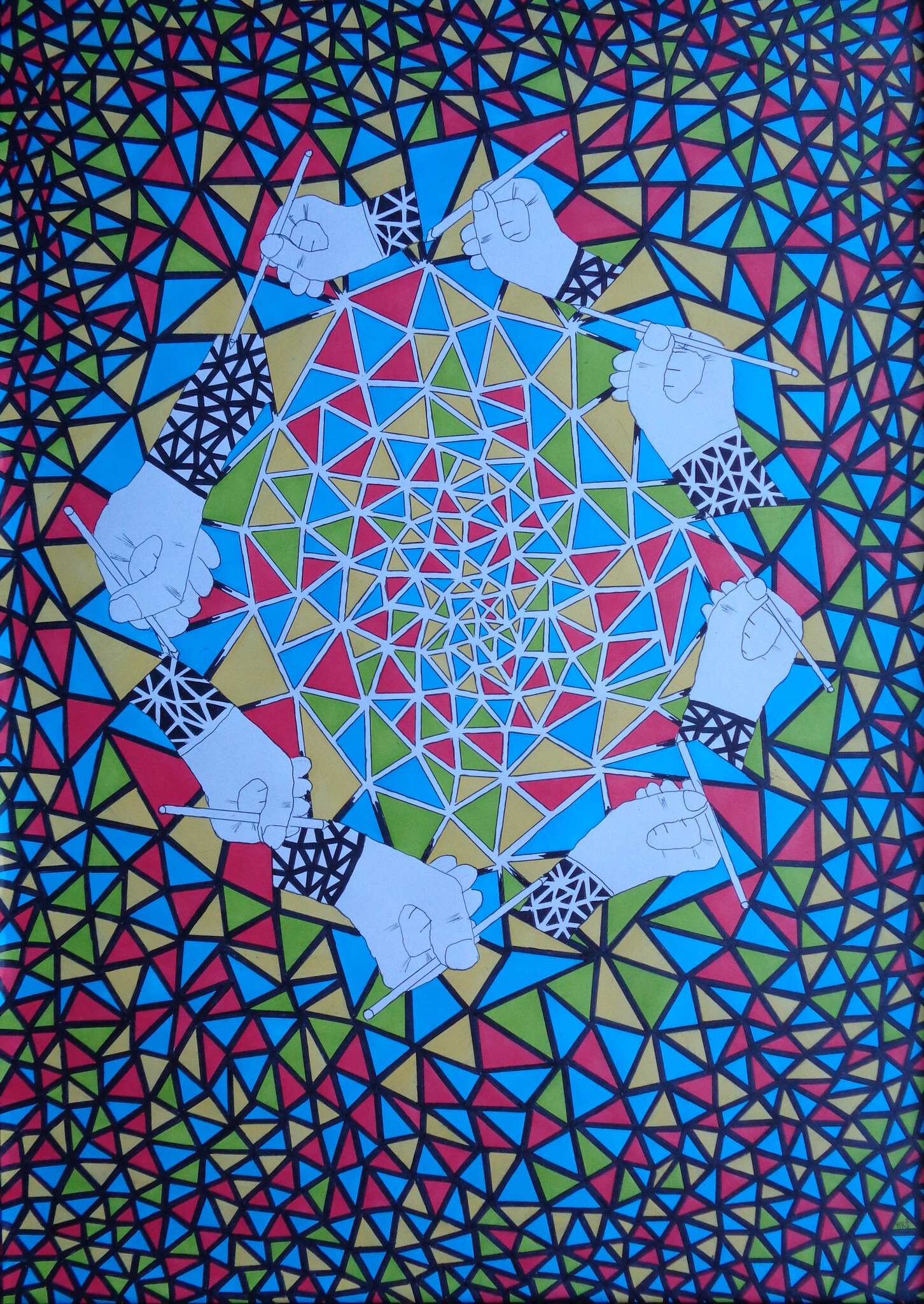 Iemand heeft ooit 1 werk met 2 handen gemaakt , ik maak er 1 met 8 ( en natuurlijk weer die driehoekjes ;-) )