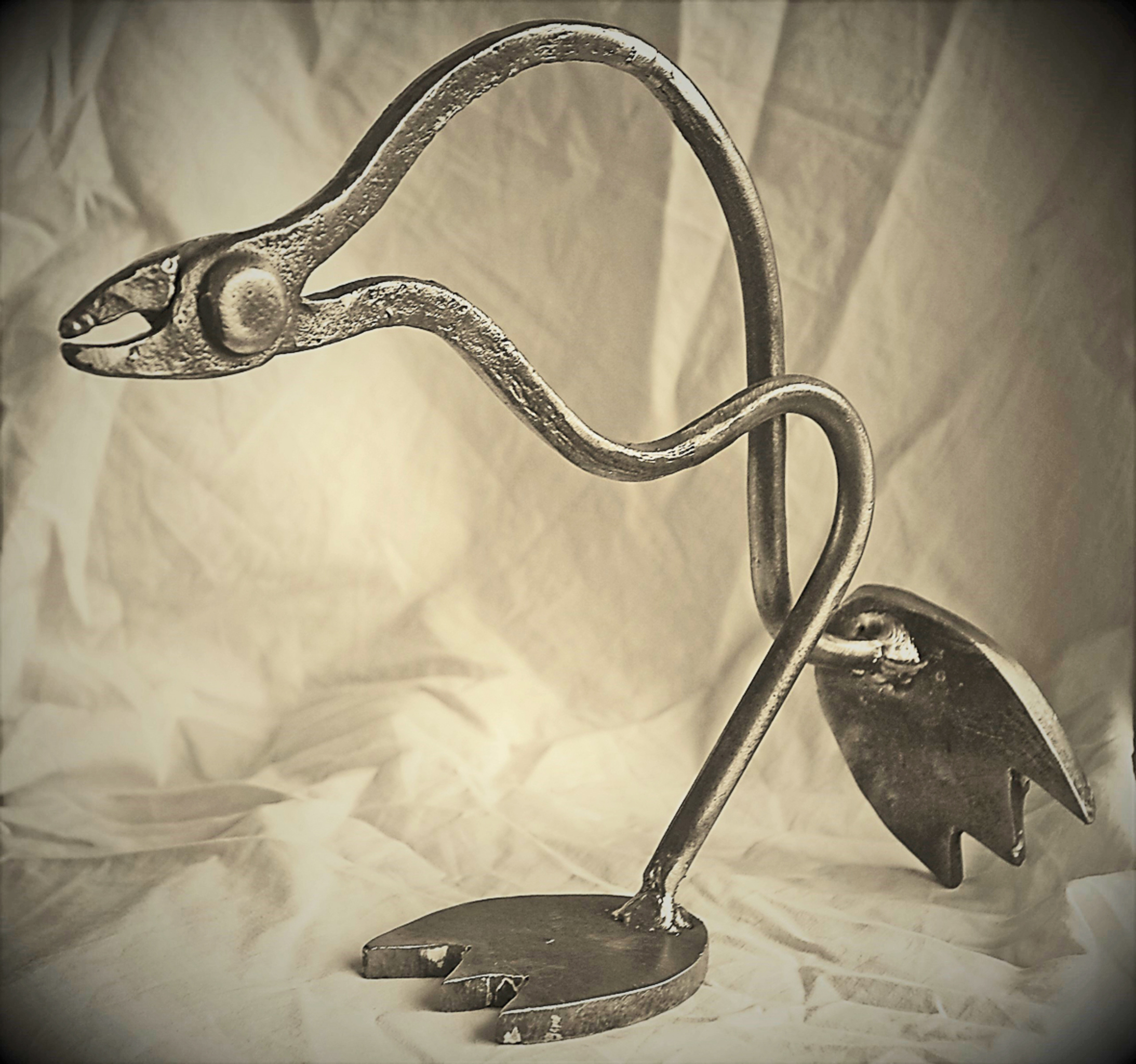 Voor mijn objecten maak ik gebruik van allerlei soorten metaal. Soms nieuw, maar in hoofdzaak is het hergebruik van zaken met een heel uiteenlopende oorsprong.