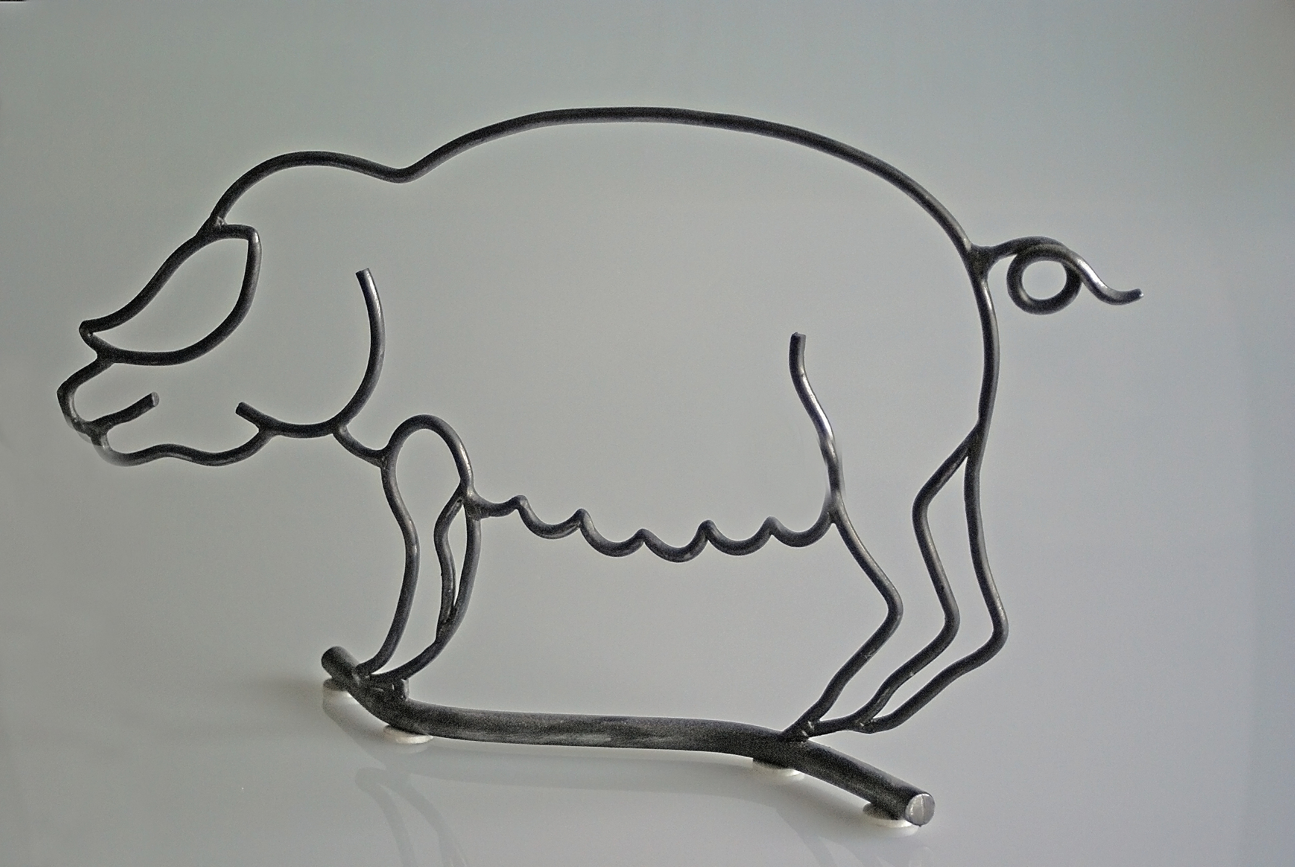 varken; sierlijk en natuurgetrouw weergegeven in metaal; zeer decoratief.
