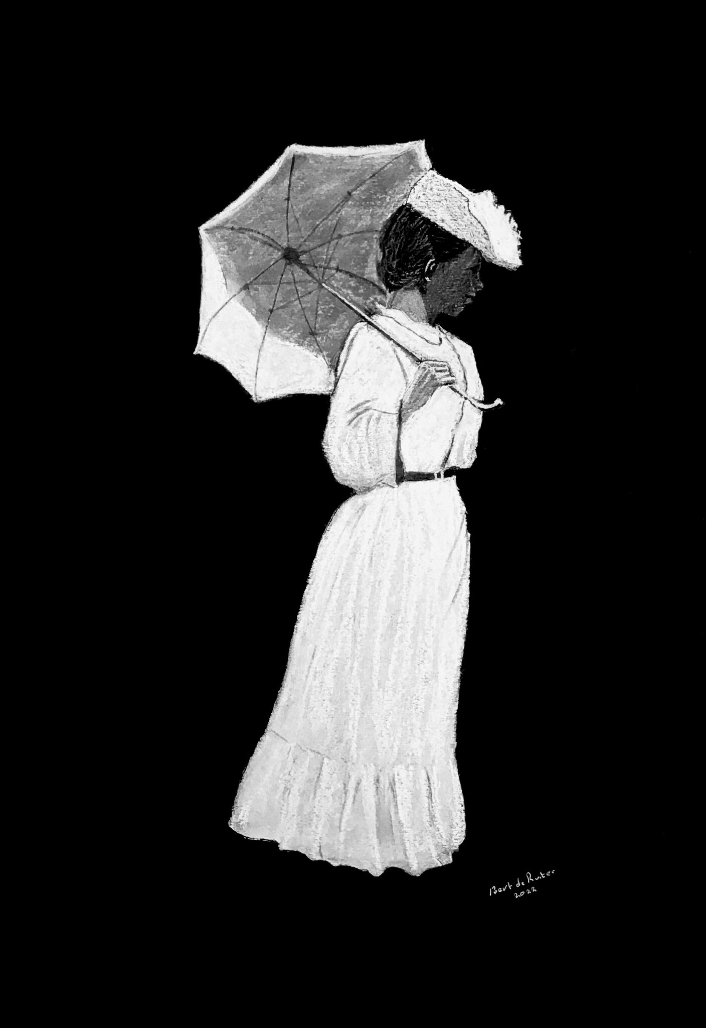 Vintage Dame Paraplu Witkrijt Zwartpapier