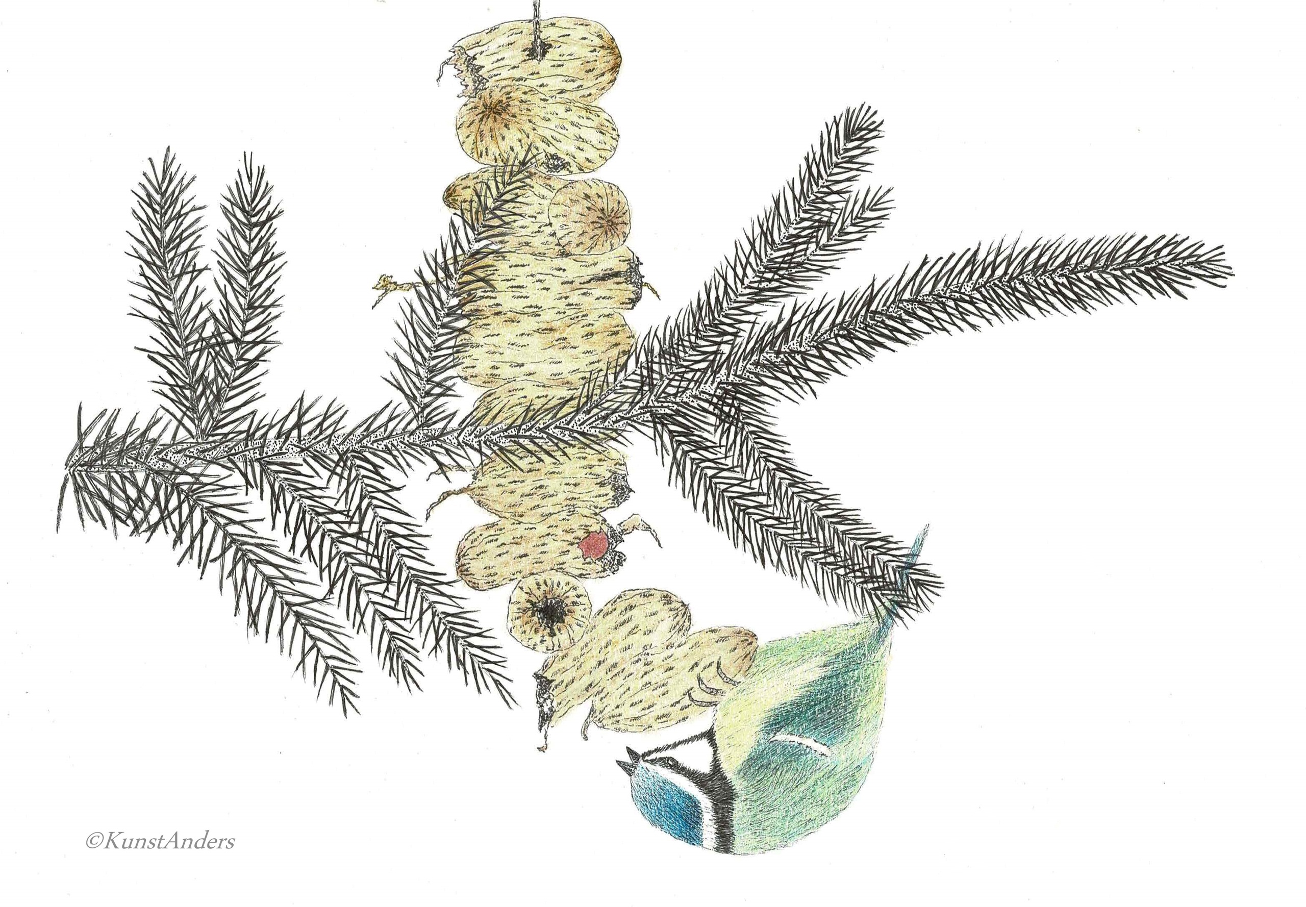 Wildlife Dieren Natuur Winter Vogels Kerst Pentekening Pimpelmees Tekenpen Derwent Staedtler Kunstanders Winsorandnewton Kleurpotlood Fabercastell