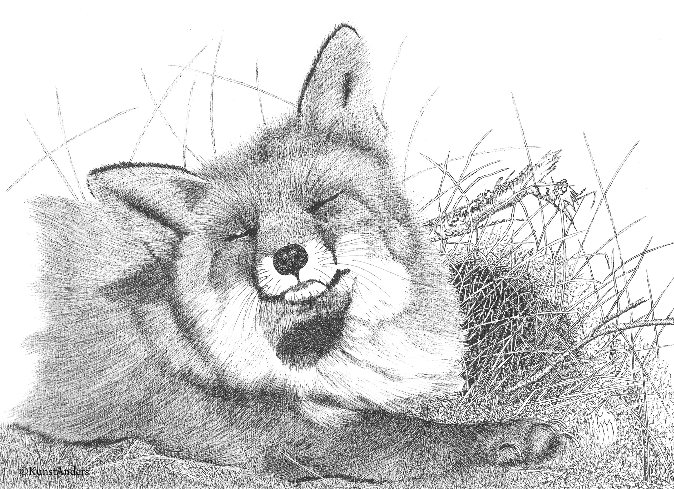 Wildlife Dieren Natuur Inkt Pen Lente Voorjaar Vos Pentekening Tekenpen Derwent Staedtler Kunstanders