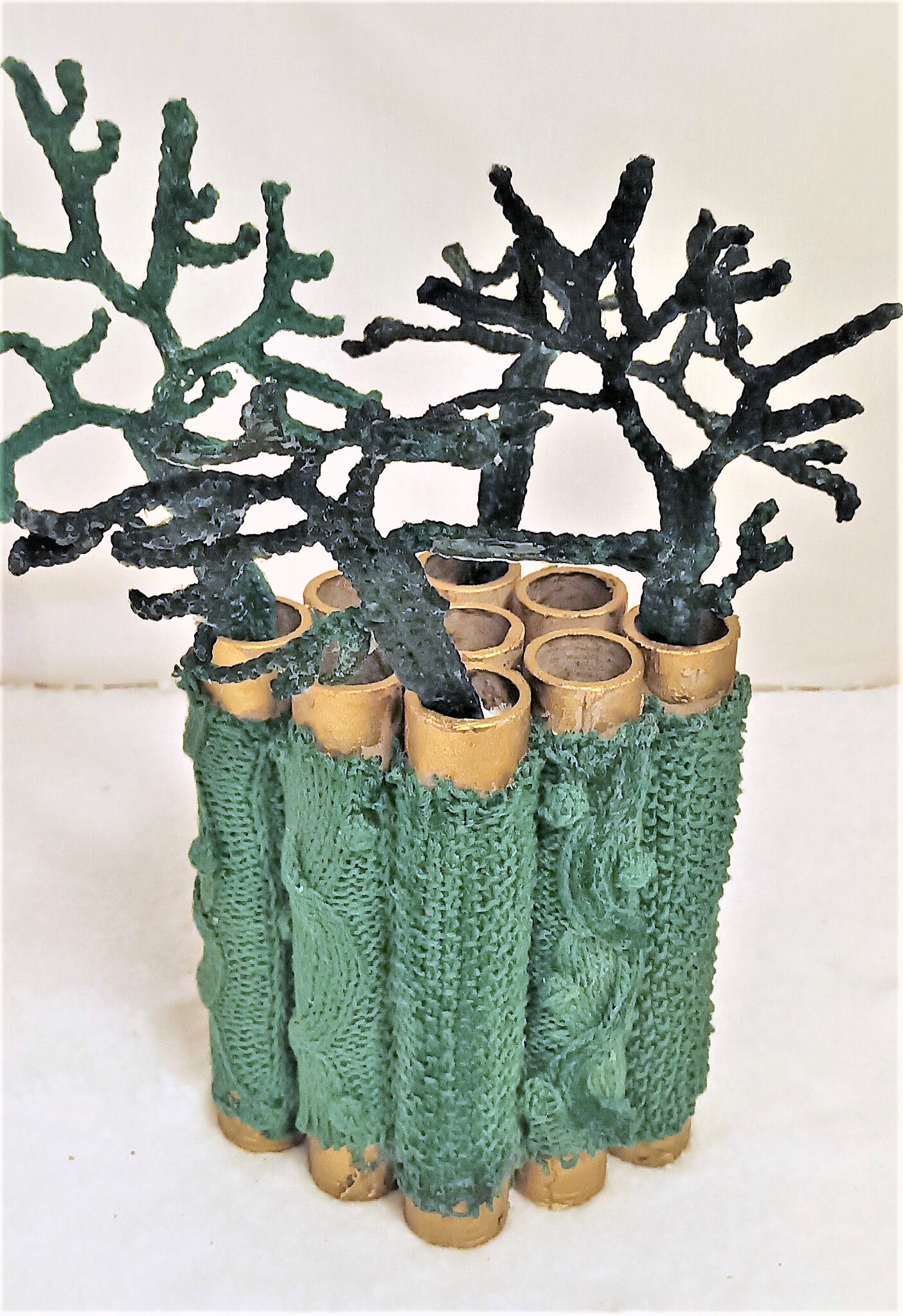 gemaakt van restanten van vuurwerk, met gebreid katoen omkleed