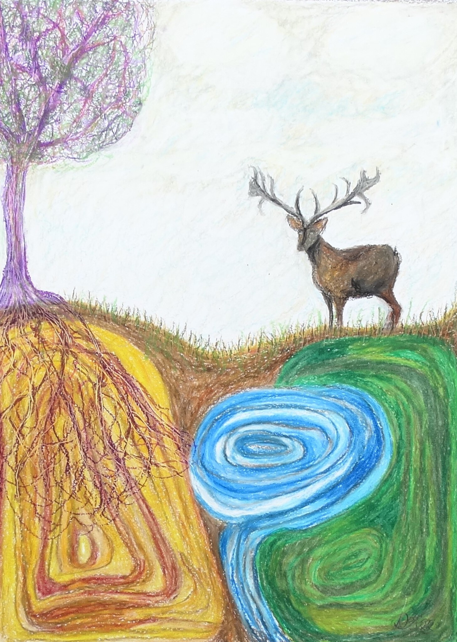 Mijn eerste grote werk dat ik met oliekrijt gemaakt heb. Wat een prachtig materiaal. Deze tekening maakte ik in een periode dat ik veel kracht nodig had. De reebok is voor mij een dier dat die kracht uitstraalt.