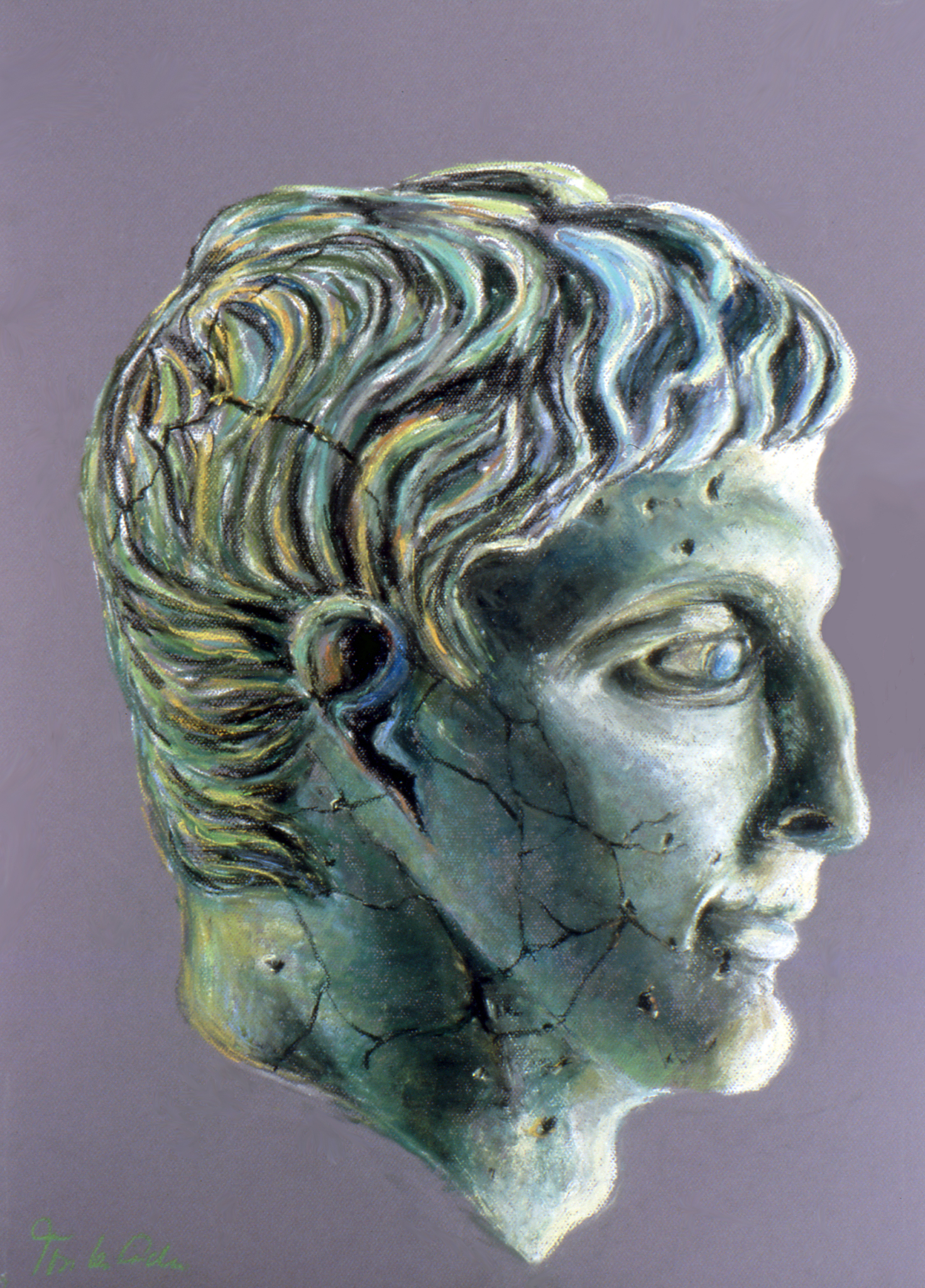 Tijdens opgravingen in Duitsland is een klein marmeren kopje gevonden dat Keizer Augustus uitbeeld. Deze vondst werd afgebeeld op een p[oster voor een expositie. Ton heeft er een pastel van gemaakt.