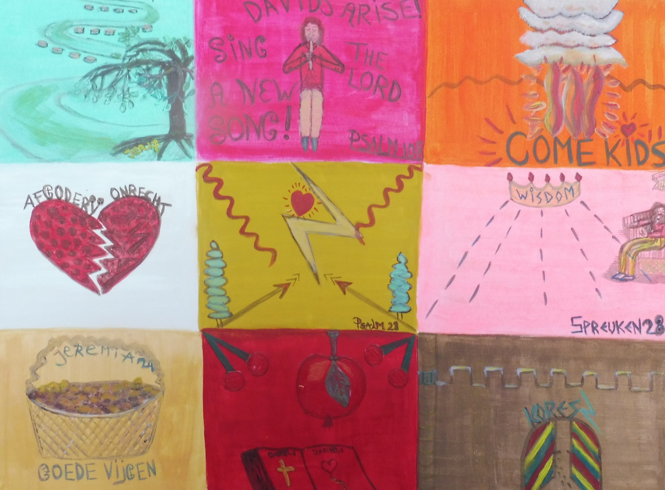 Goede Vijgen Mand Jeremia Vierentwintig Roze Groen Bruin Goud Zwart Fuchsia Oranje Geel Wit Grijs Bruinrood Boom Waterstromen Blad Bladeren David Fluit Zingen Zang Psalm