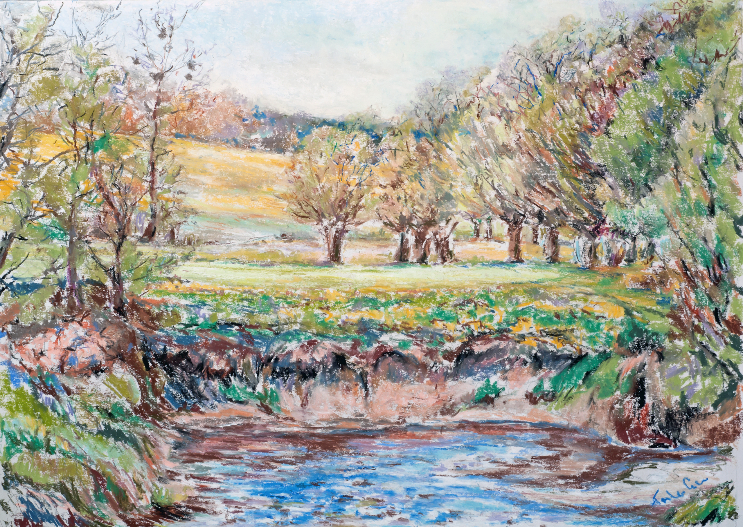 En-plein-air gemaakt langs De Geul in de tijd dat Ton in Noorbeek woonde. Deze pastel is niet ingelijst en mag voor een speciale prijs verkocht worden.