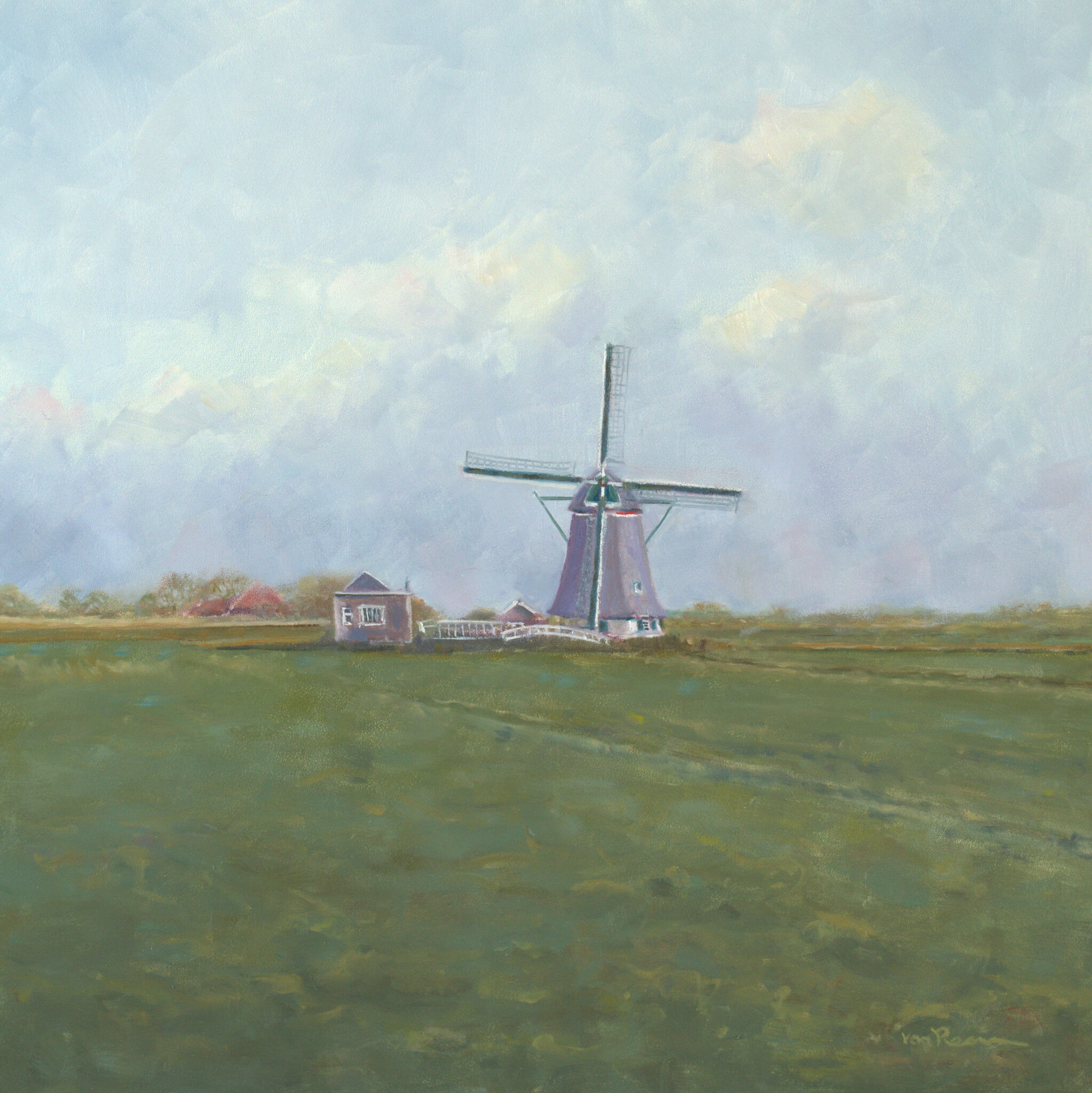 Roeland van Reem schildert met olieverf op linnen of op paneel . Belangrijke thema's zijn; bloemstilleven, strand, zee, sneeuw- en polderlandschap.