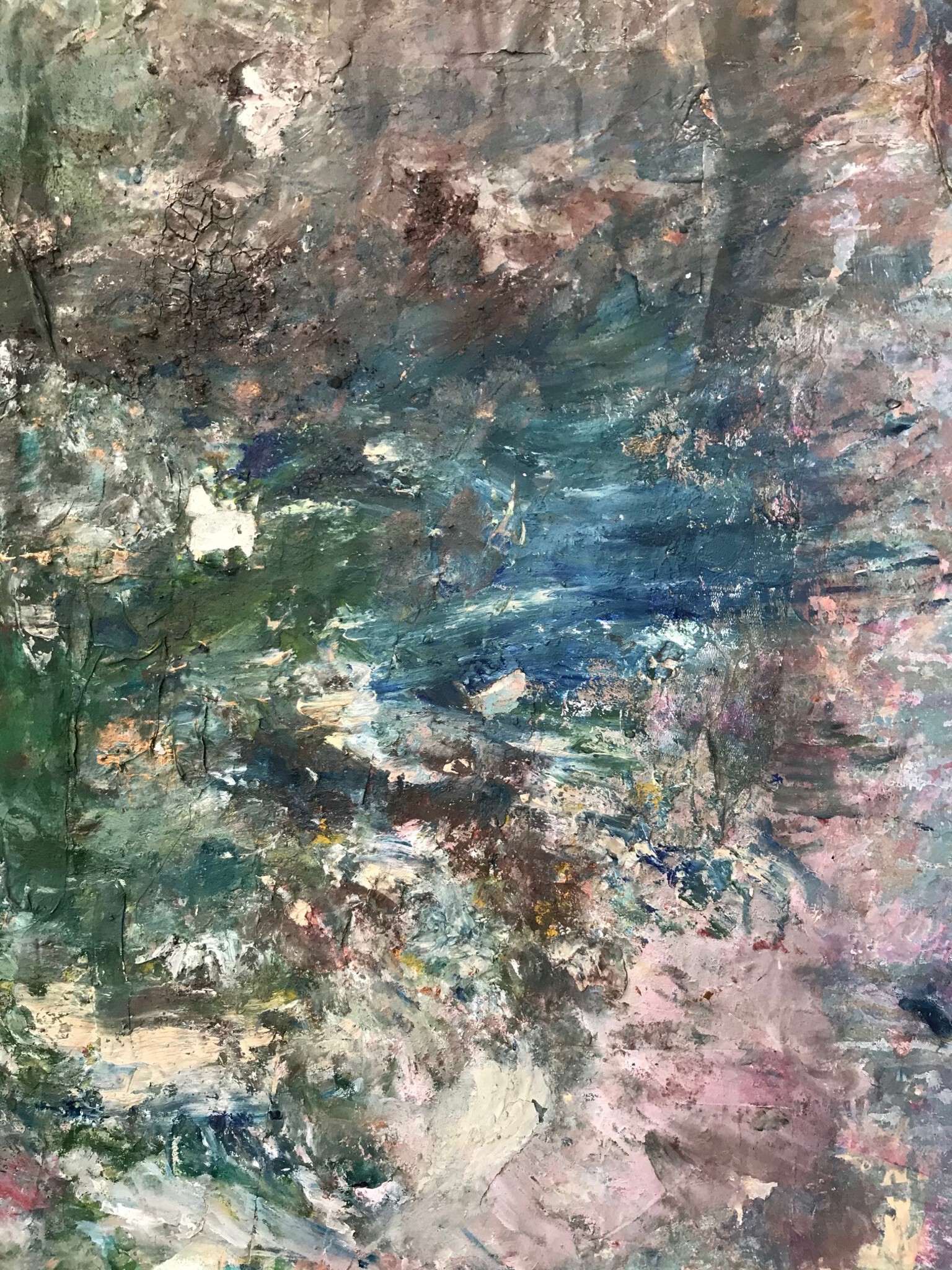 Mixed Media Natuur Materieschilderij Stroom Ongerept