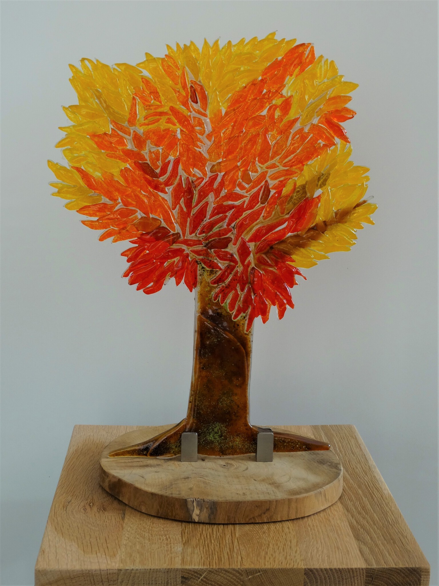 Rood Oranje Geel Bruin Glasfusing Herfst Boom Glasobject Glasfusen