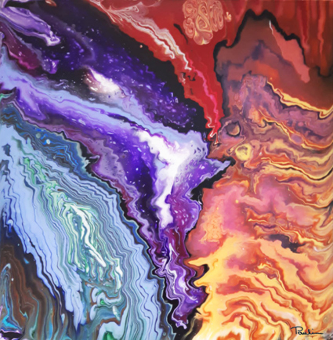 Rood Blauw Acryl Pouring