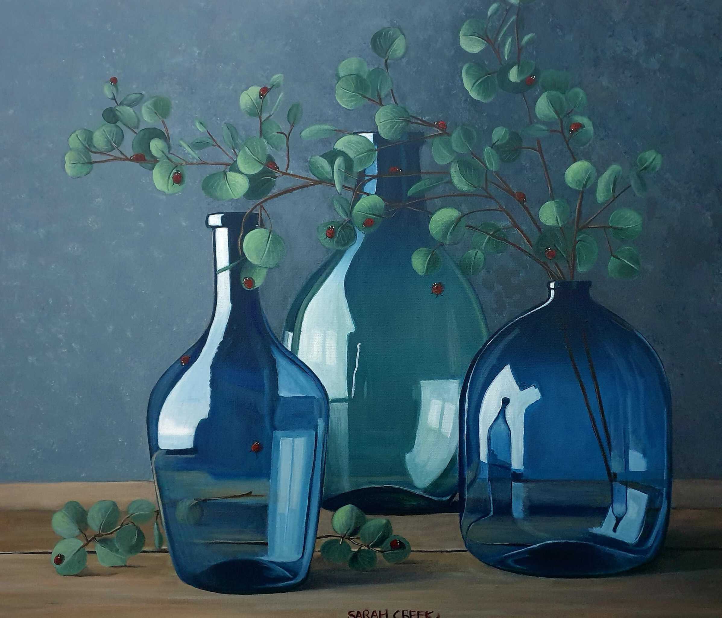 Sarah Creek schildert met acryl op canvas of linnen. Onderwerpen zijn portretten en stillevens. Sarah geeft les aan 55 talentvolle cursisten in een atelier aan huis.