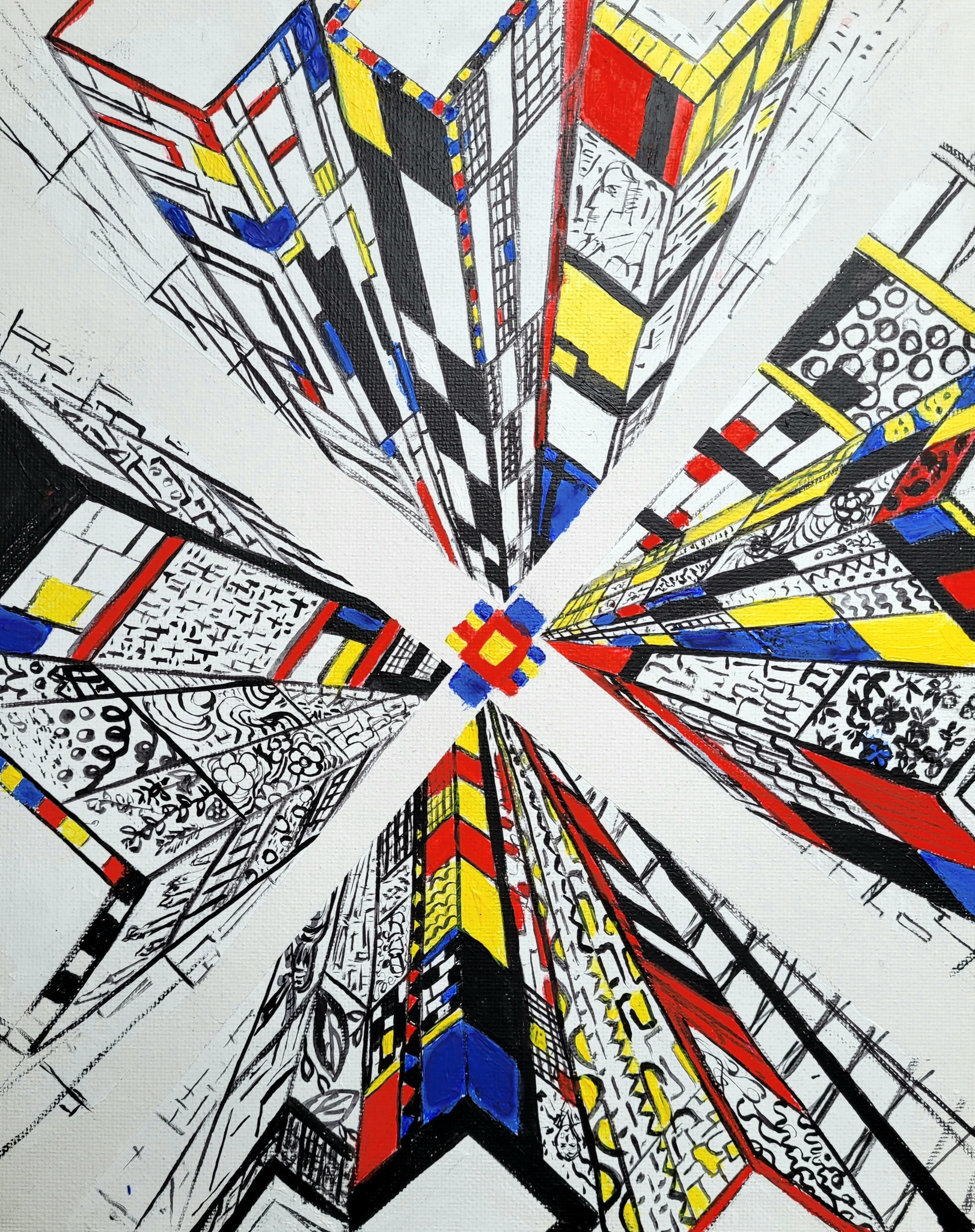 Gebouwen in de kleuren van mondriaan.