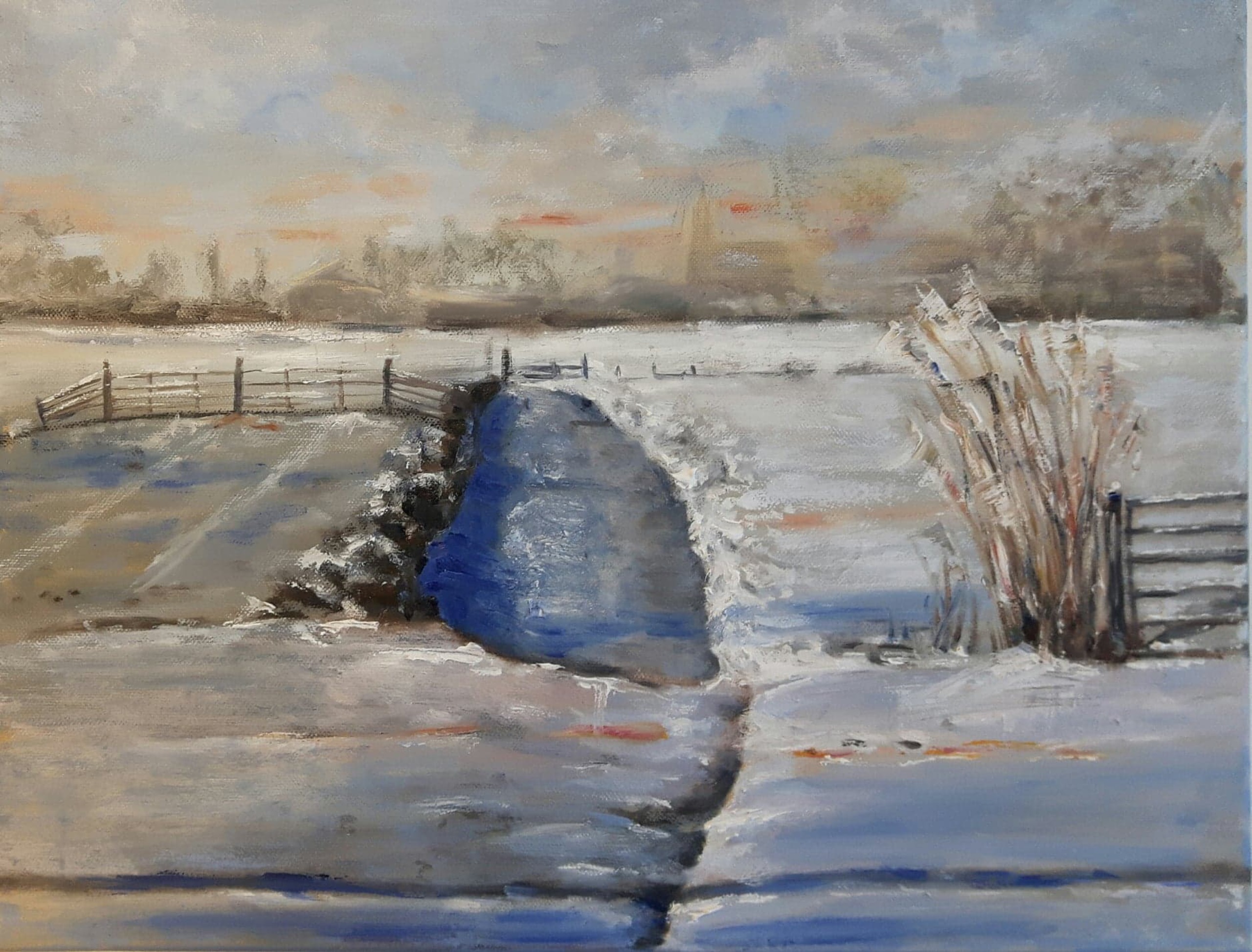 Geestdorp Woerden Holland Sneeuwlandschap Polder Olieverf Nisett Snowlandscape Landscape Natuur