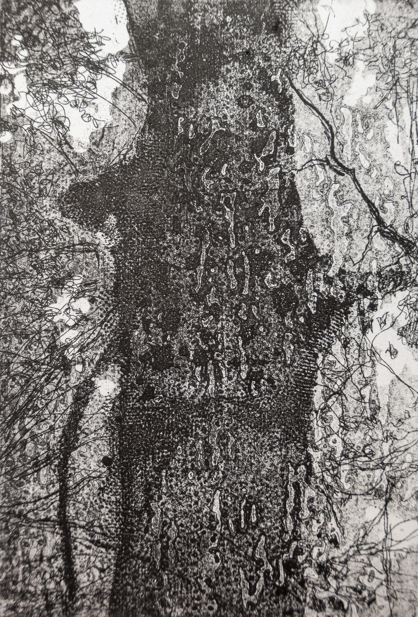 Zwart Landschap Bos Boom Grafiek Ets Boomstam Bast Grafik Printmaking