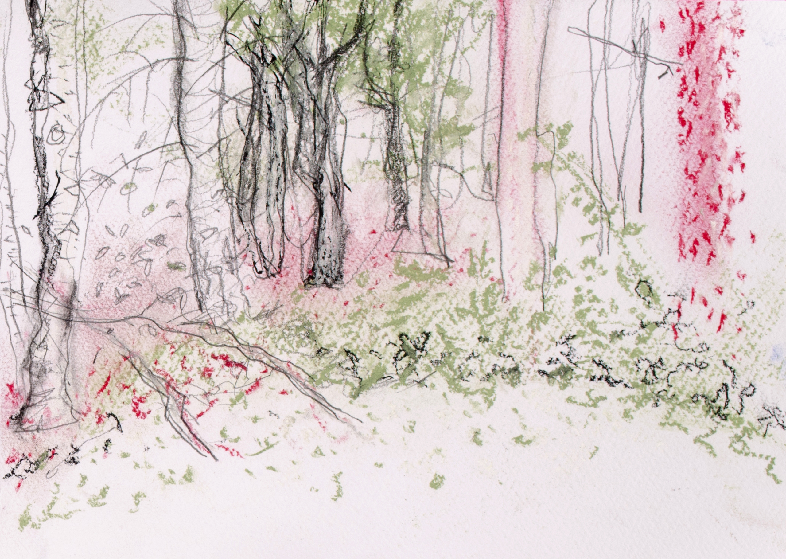 Rood Landschap Groen Tekening Natuur Bomen Bos Pastel