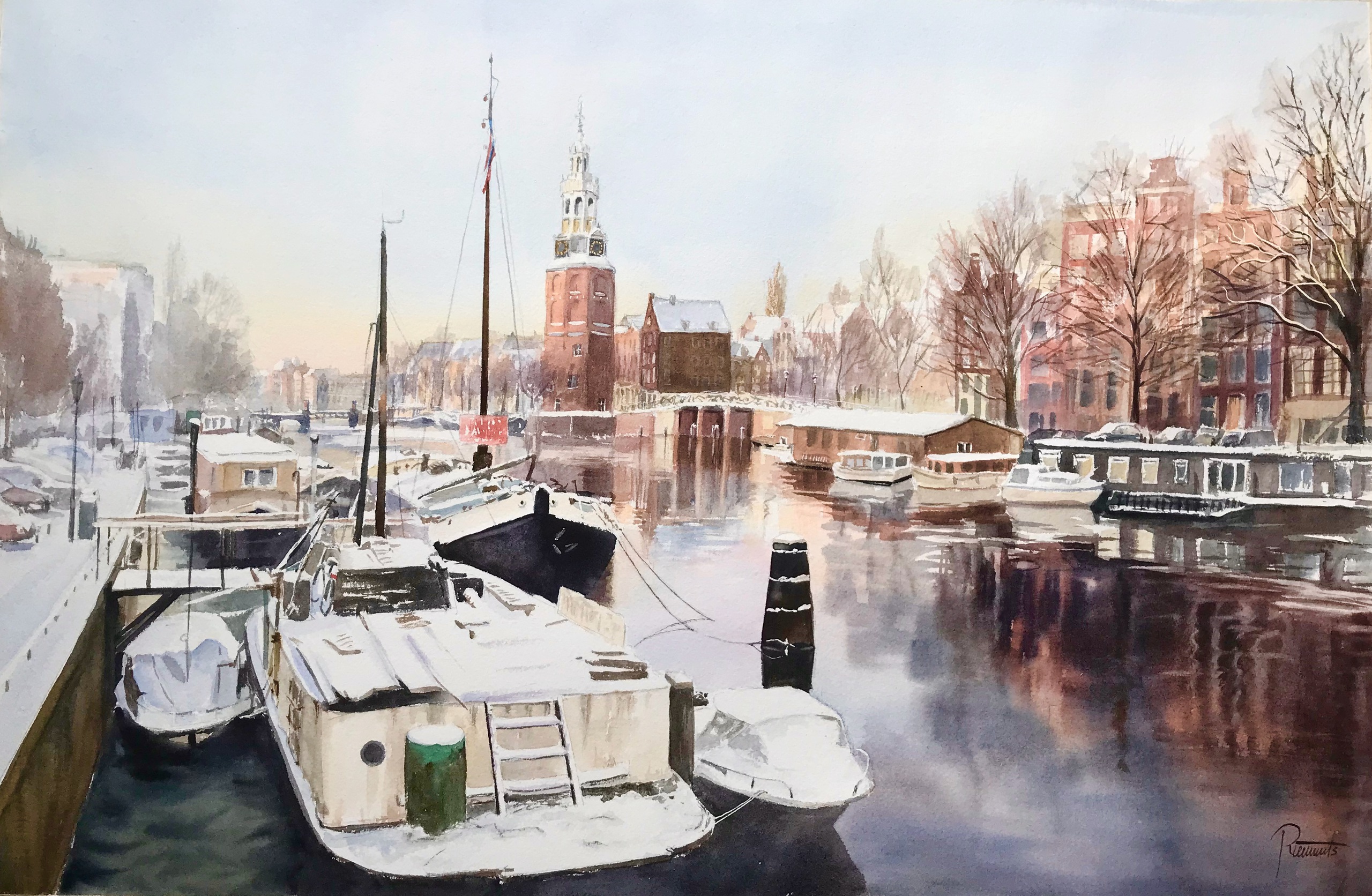 Sneeuw Amsterdam Schepen Boats Snow Winterlight Montelbaanstoren Oudeschans