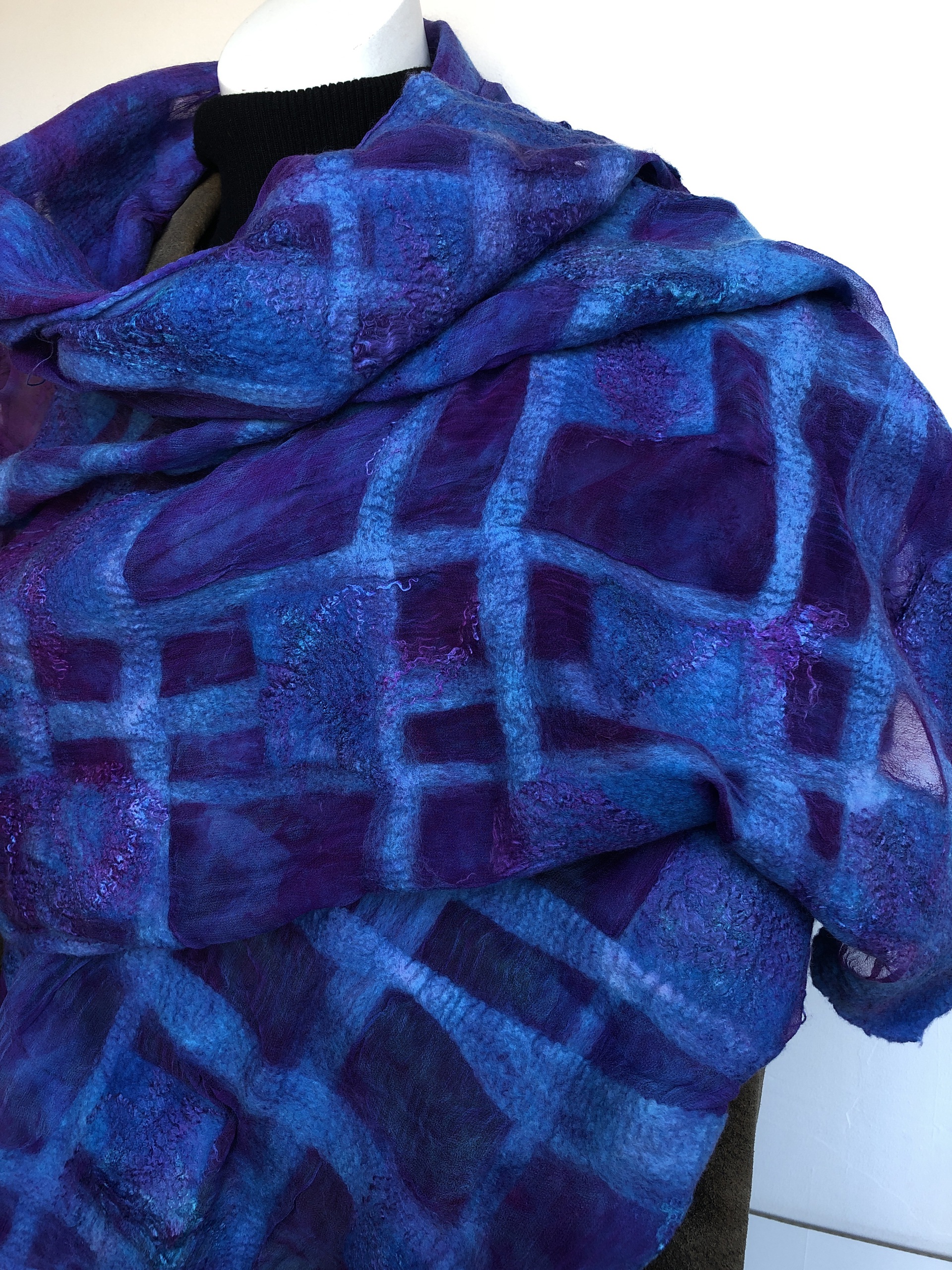 Grote handgemaakte sjaal van zijde en vilt, one of a kind.